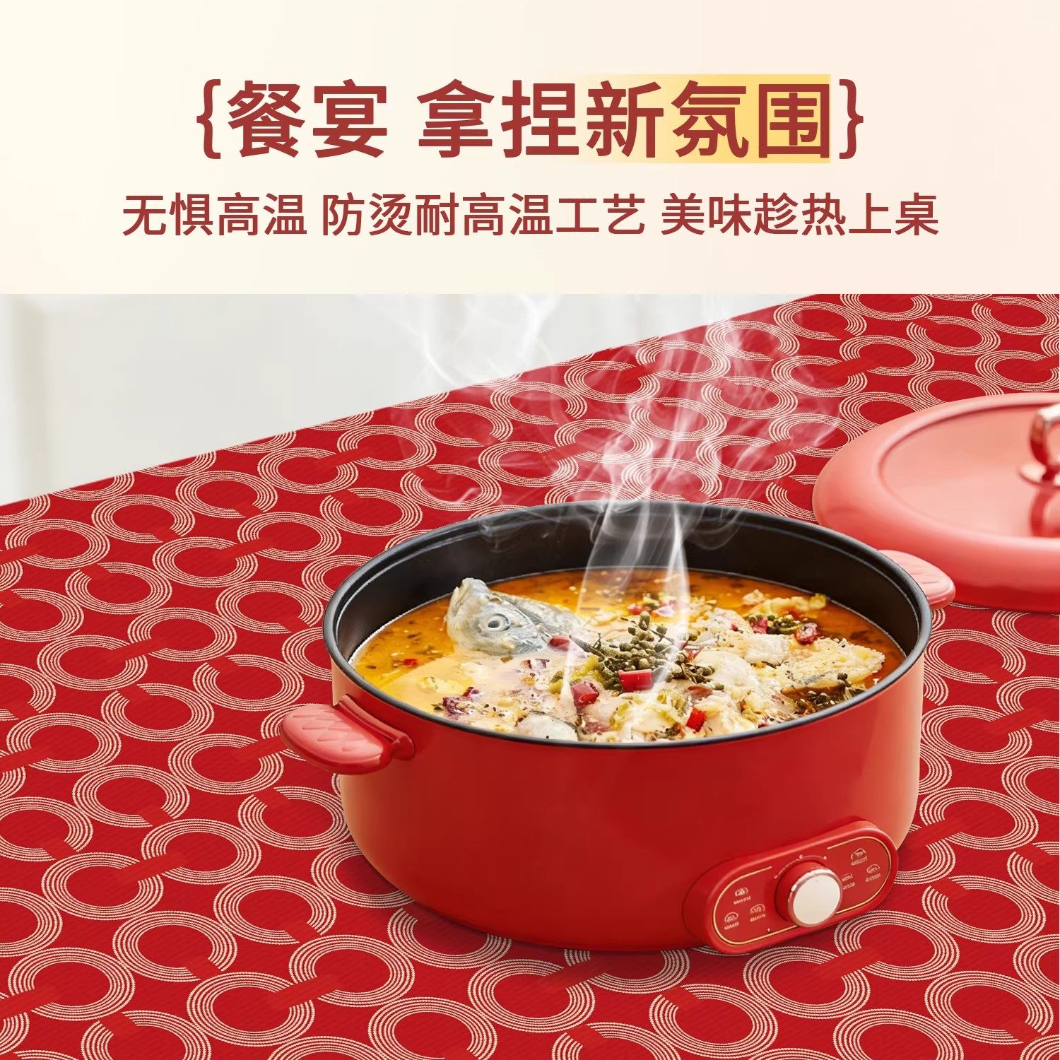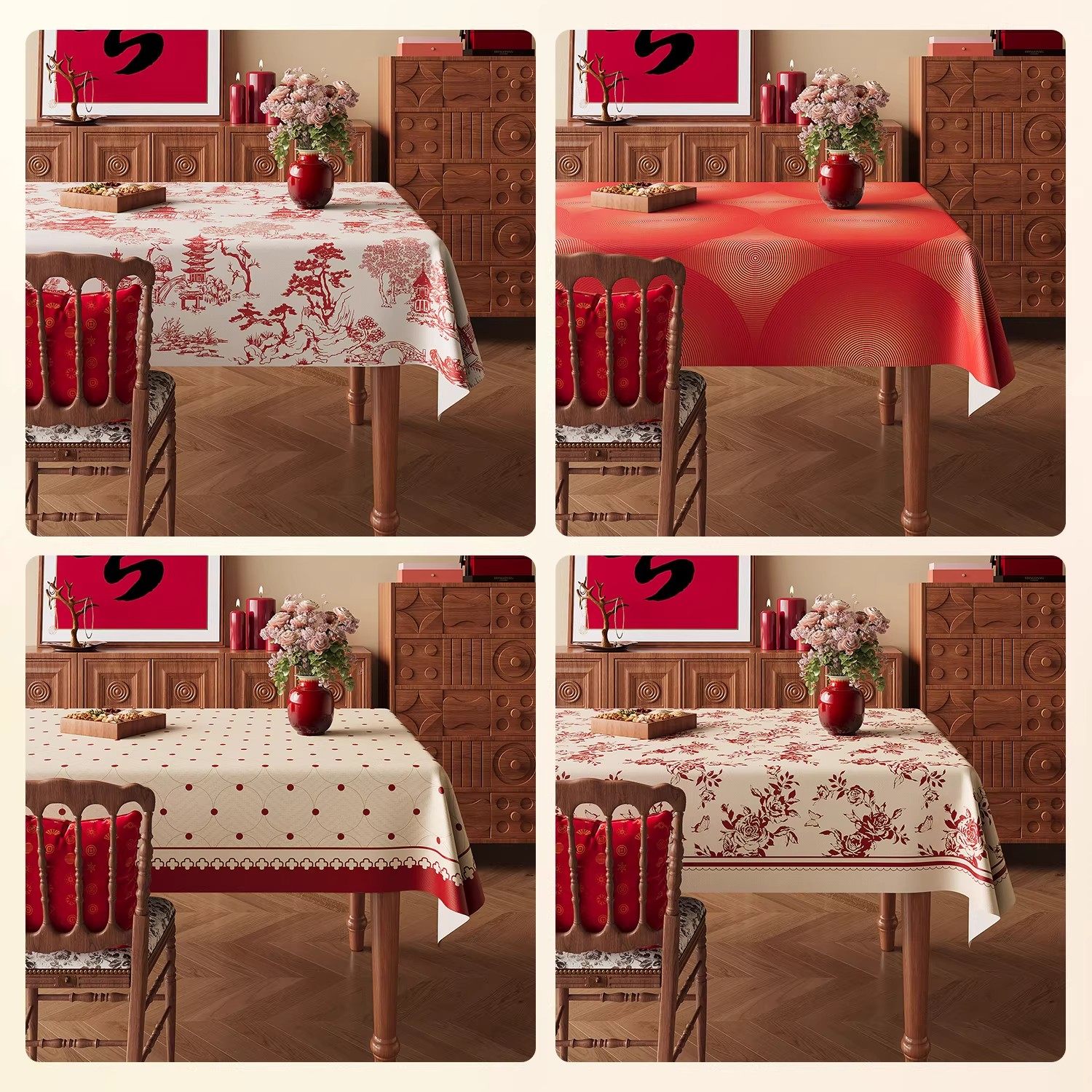 红色新年桌布餐桌布免洗防水防油马年氛围感轻奢高级感茶几布防烫