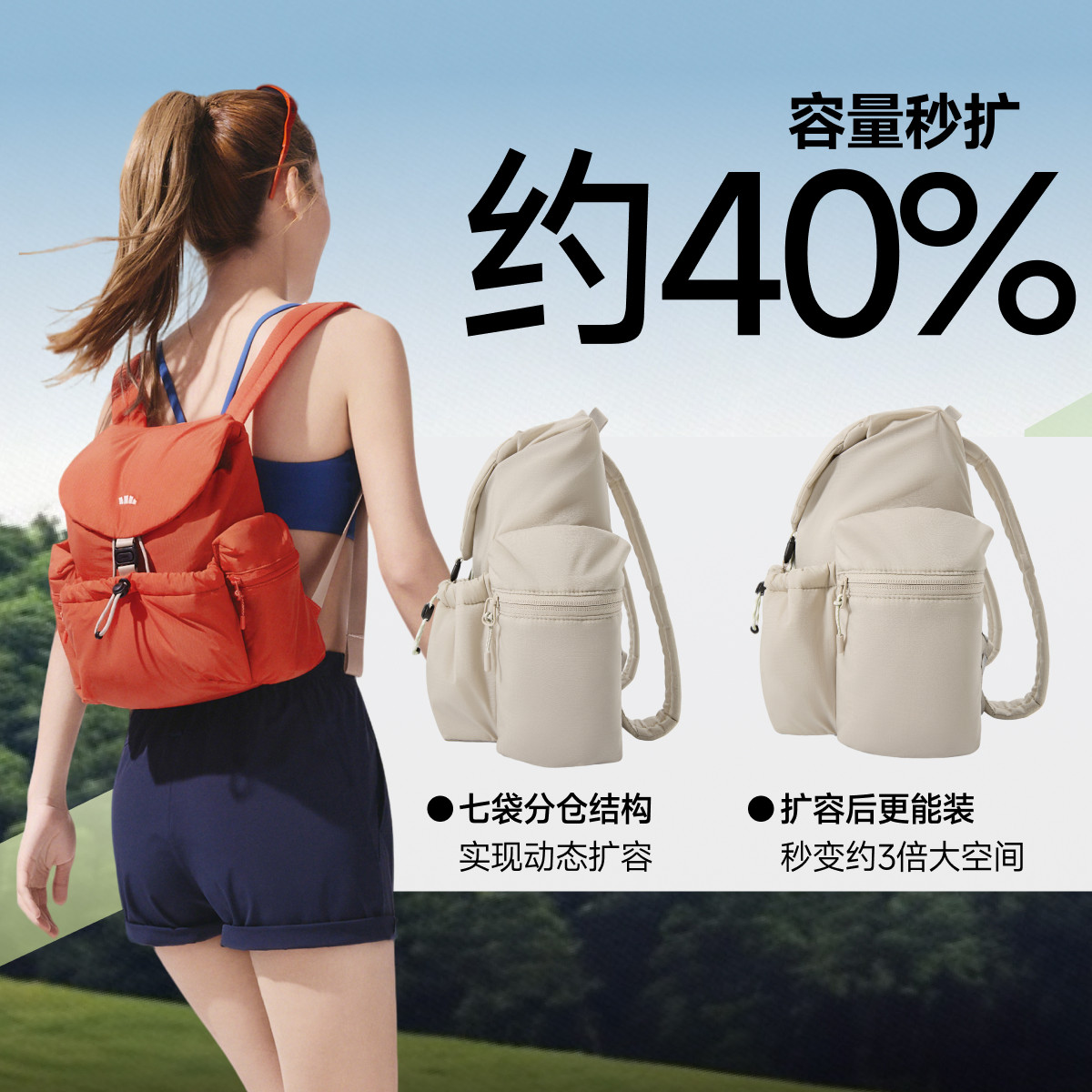 蕉下双肩包书包女户外徒步轻便户外大容量上班防水抽绳通勤背包