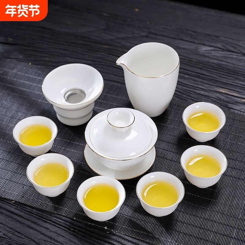 羊脂玉功夫茶具套装家用泡茶壶办公室会客高档白瓷盖碗茶杯喝茶