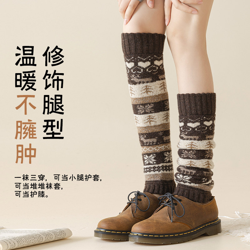 袜套堆堆袜女款秋冬羊毛保暖毛圈加厚腿套护腿冬季复古民族小腿袜