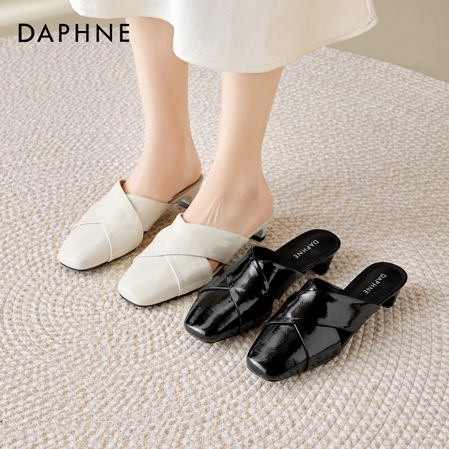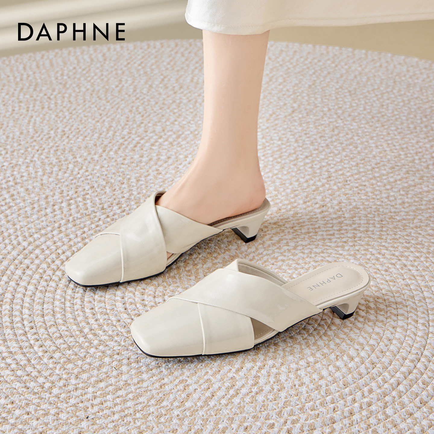 达芙妮法式包头拖鞋女外穿2026新款夏季一脚蹬中跟穆勒鞋绝美凉鞋