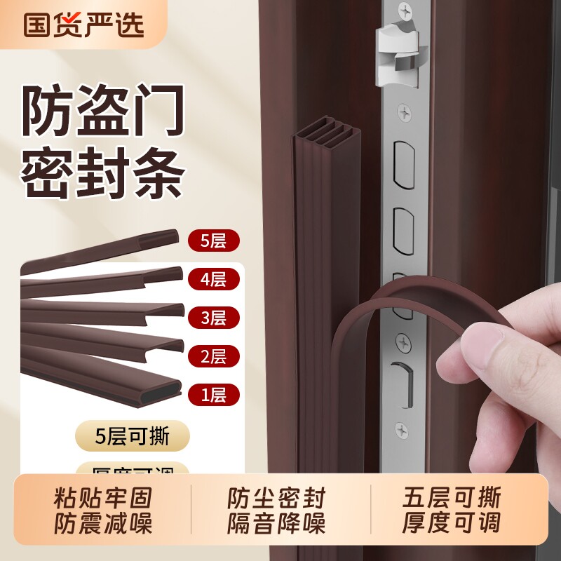 防盗门密封条自粘型黑色入户门边门缝隔音门窗防风保暖硅胶防撞条