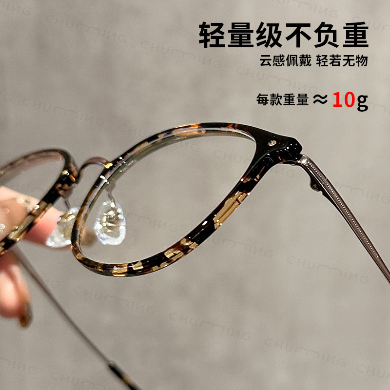 纯钛圆框近视眼镜蔡司防蓝光女可配度数素颜文艺细边眼镜框镜架男