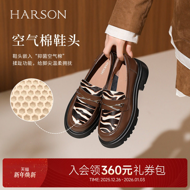哈森时尚百搭经典乐福鞋一脚蹬粗中跟女单鞋2025秋季新品HL257135