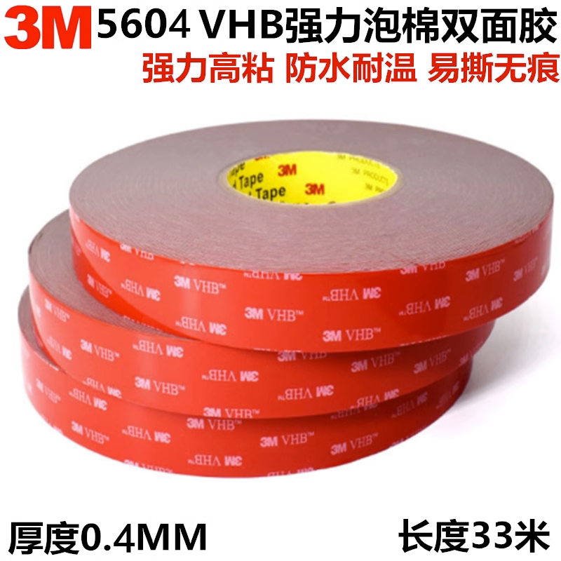 3m5604VHB灰色强力高粘度持久超薄车用双面胶防水耐温无痕0.4mm厚
