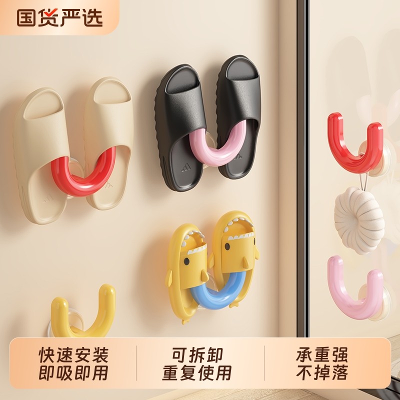 浴室拖鞋架吸盘免打孔壁挂厕所卫生间专用新款沥水挂架挂钩置物架