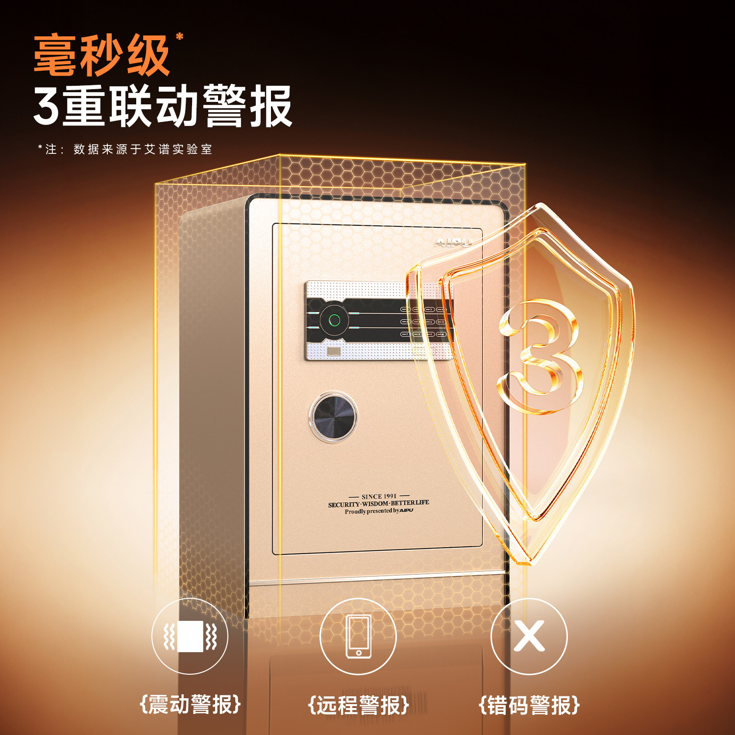 AIPU艾谱WiFi智能防火防盗保险柜家用2026新款3S国标认证指纹家庭保险箱大型床头柜办公室重型密码文件柜夹万