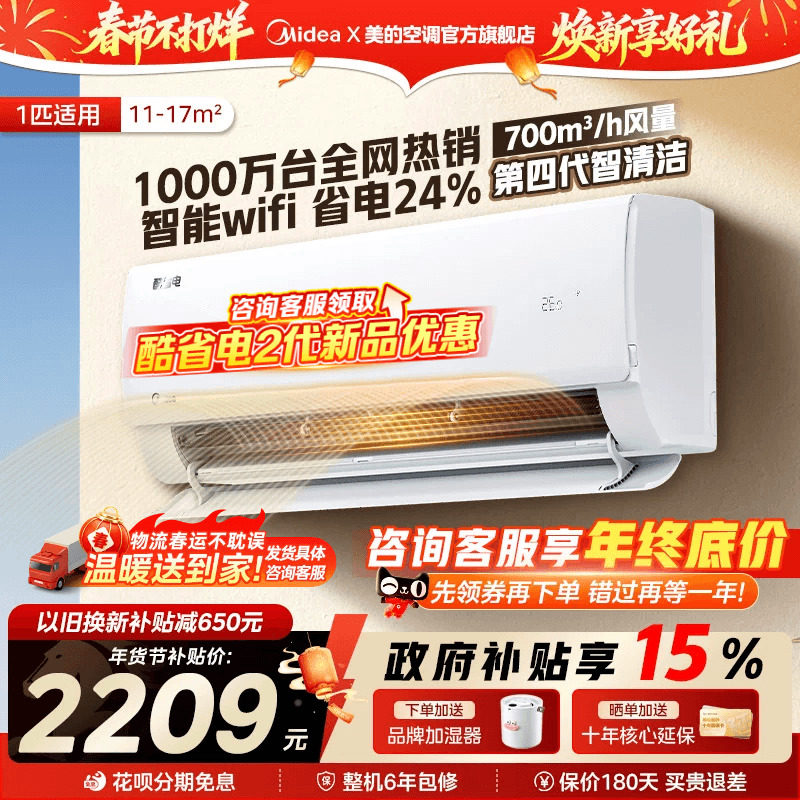 美的空调酷省电二代大1.5匹1匹一级能效变频冷暖家用挂机官方正品