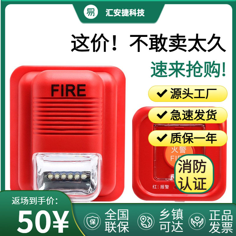 消防认证声光喇叭安全报警器 室内消防火灾警号频闪报警器