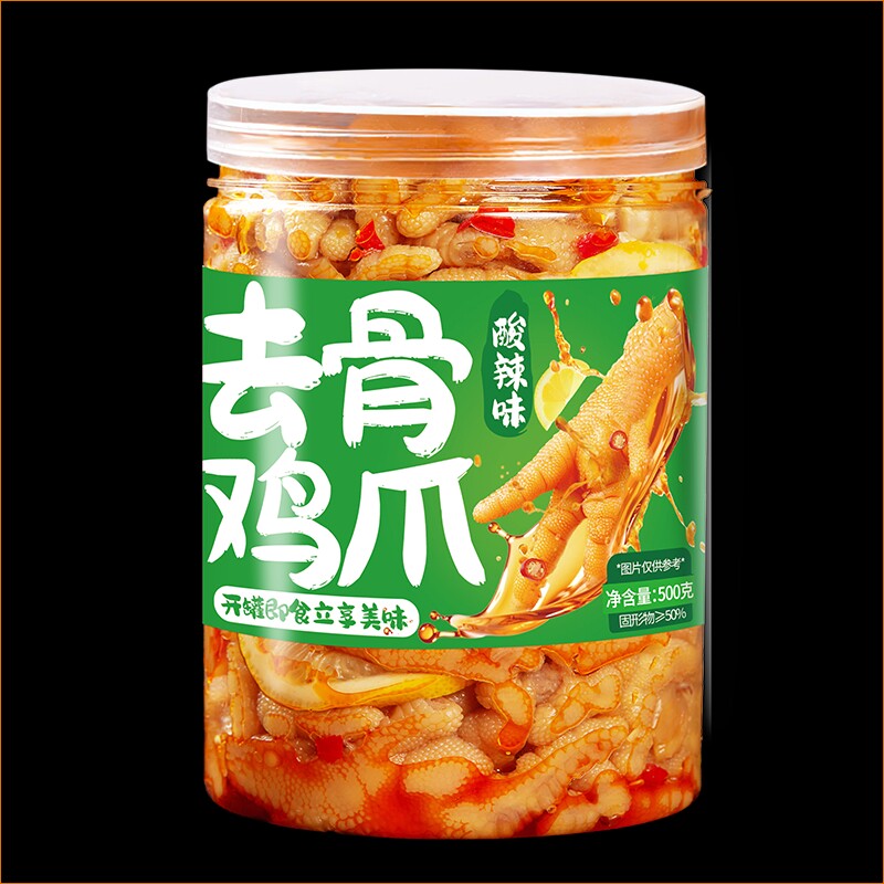 无骨鸡爪柠檬酸辣味500g/罐装网红小吃脱骨去骨凤爪即食熟食零食