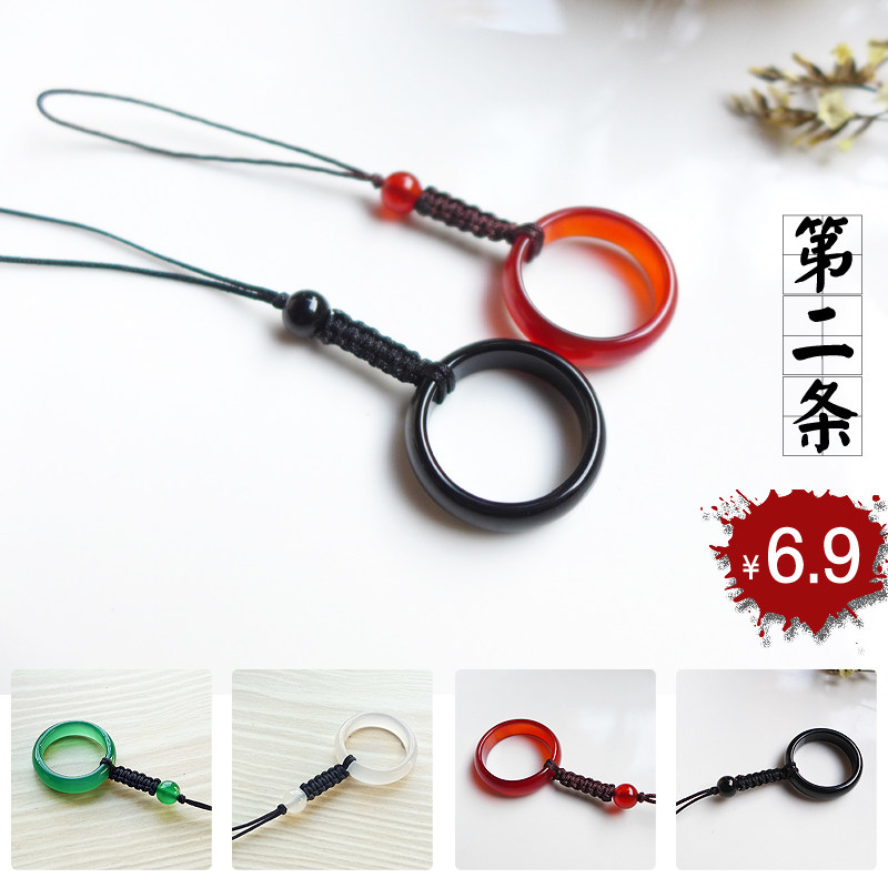天然戒指中国风手机壳男扣防尘塞U盘挂件手机挂绳女钥匙扣吊坠饰