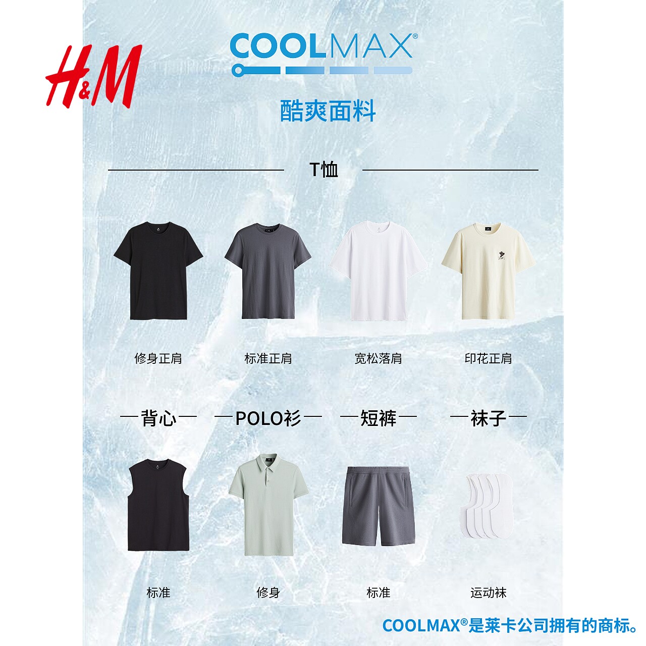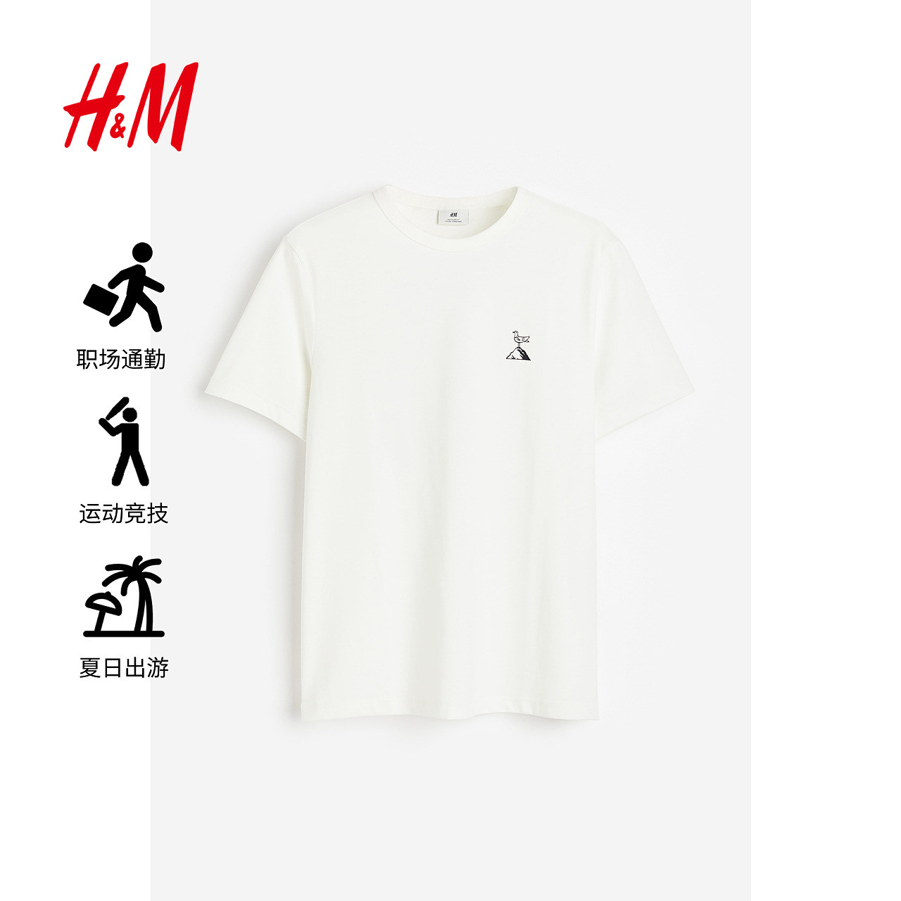 HM男装女装T恤春季透气圆领户外出游运动短袖内搭简约上衣0685816