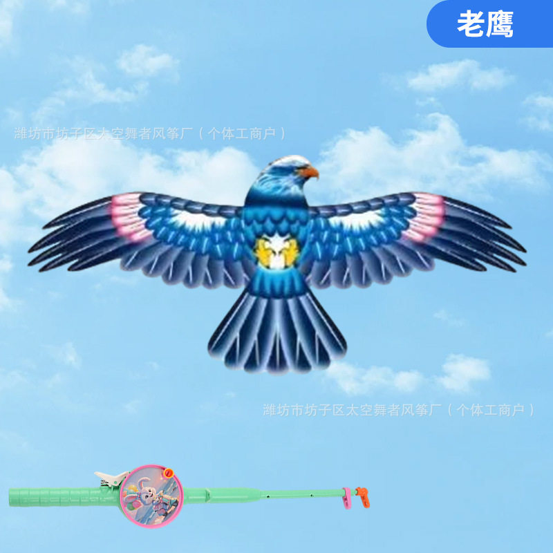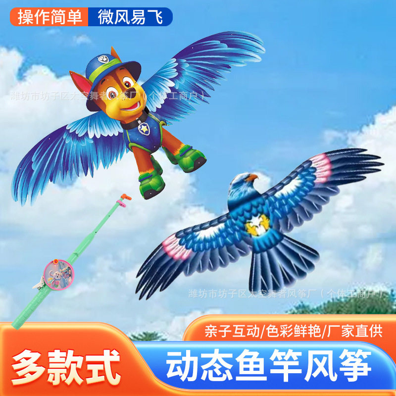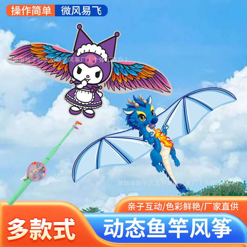 潍坊动态手持鱼竿风筝翅膀抖动微风易飞迷你小风筝公园摆摊