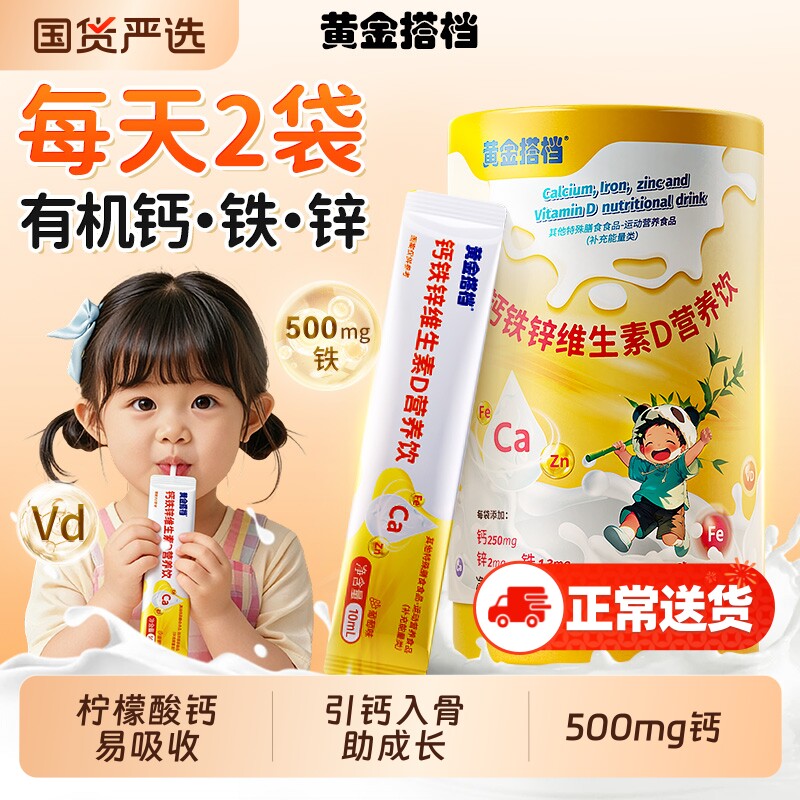 黄金搭档钙铁锌口服液直饮包儿童液体钙补钙长高成长增加免疫力