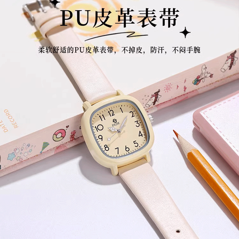 方糖女款手表初高中学生公务员静音考试电子时尚石英表腕表ins风