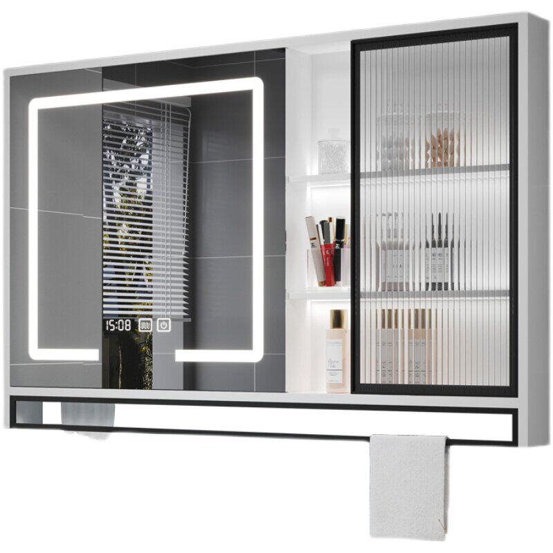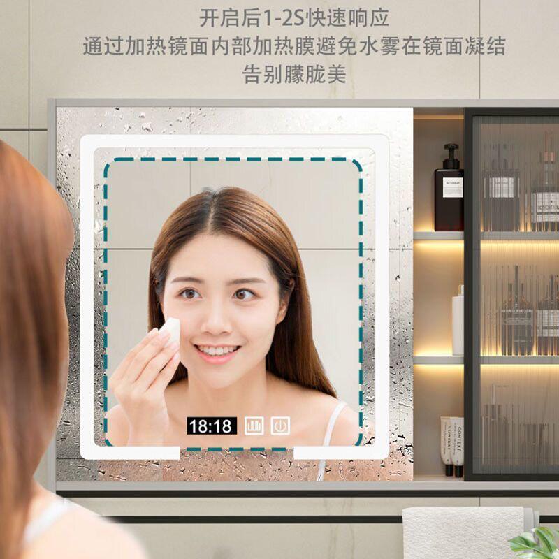 智能浴室镜柜实木单独挂墙式卫生间镜子带灯玻璃门层板灯除雾镜箱
