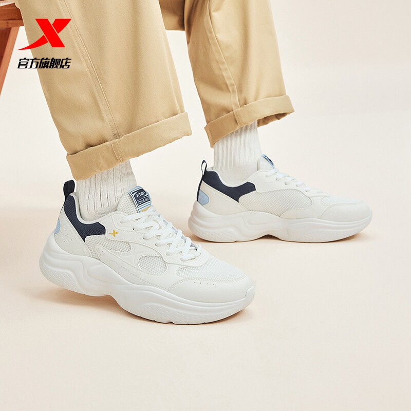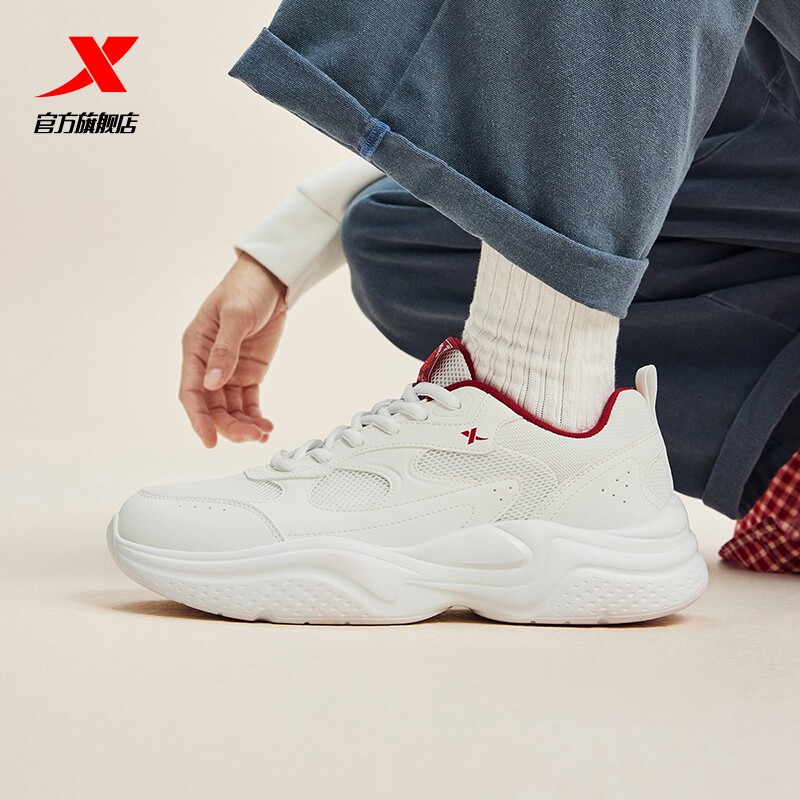 特步星尘丨休闲鞋男鞋夏季网面情侣百搭小白鞋轻便运动鞋增高女鞋