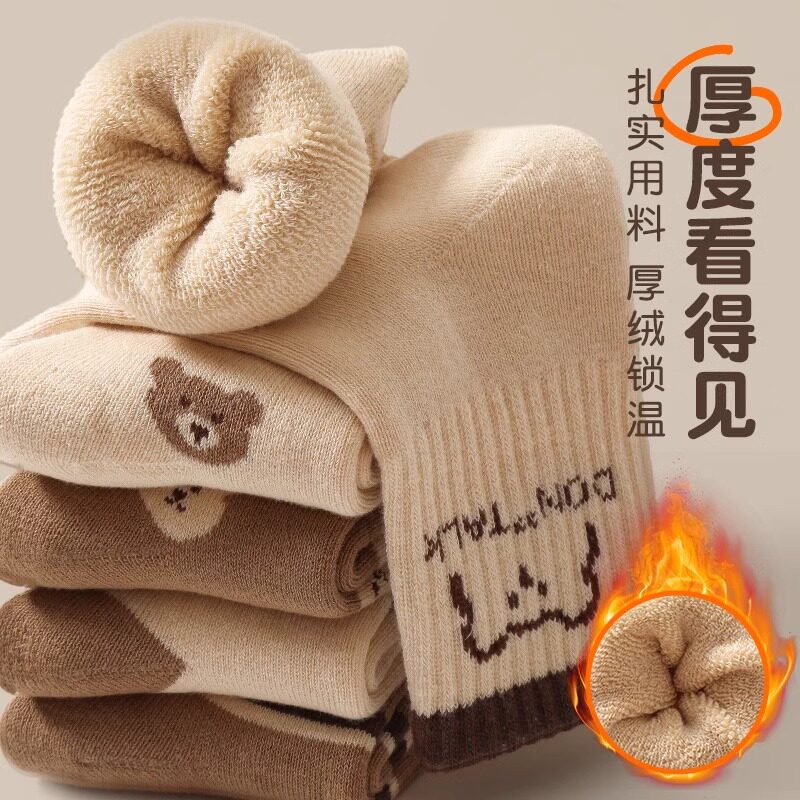 儿童袜子秋冬男童袜冬款加绒加厚保暖毛圈袜婴儿宝宝睡眠男厚袜子