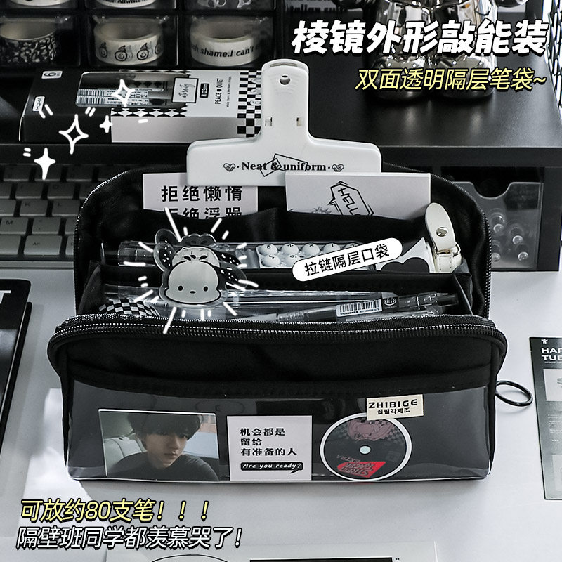 10层超大容量透明笔袋男孩款文具盒初中生高中铅笔盒男女生学生用文具袋女孩款高颜值铅笔袋2025年新款小学生