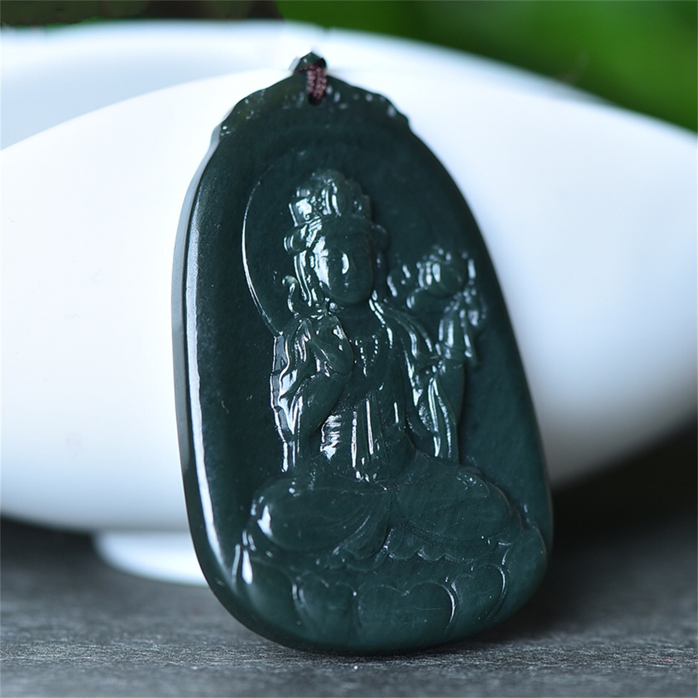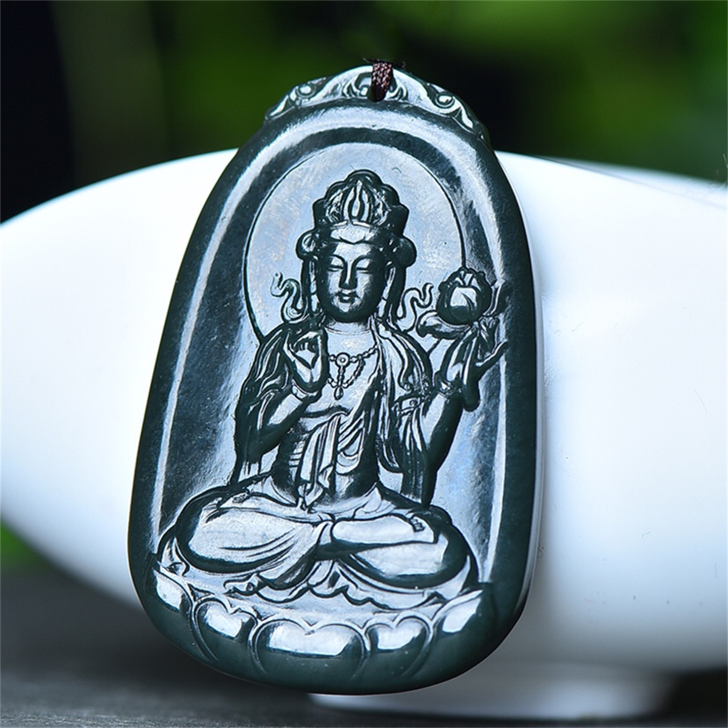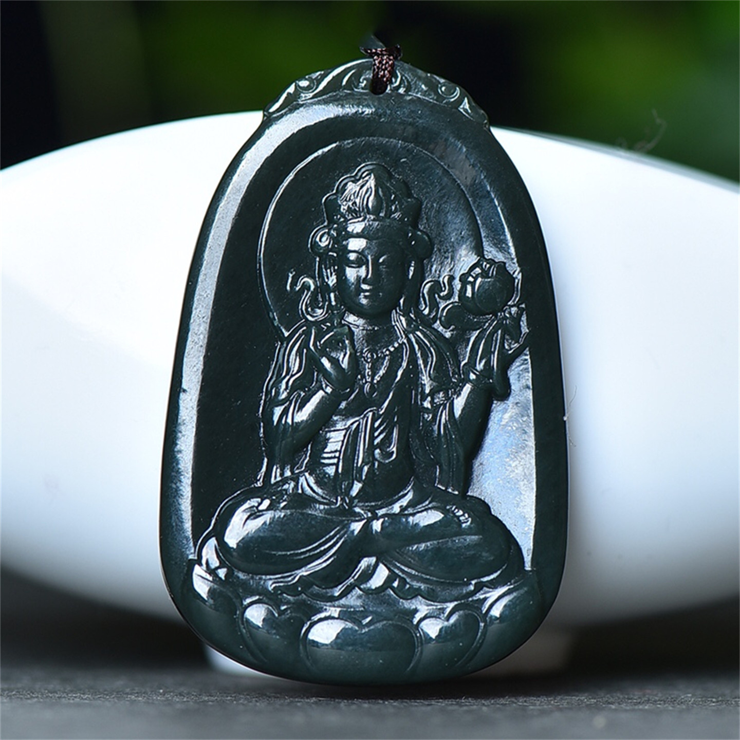 送证书天然新疆和田玉青玉挂件莲花观音菩萨玉石吊坠男款玉佩8880