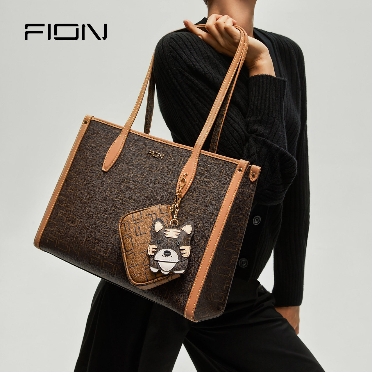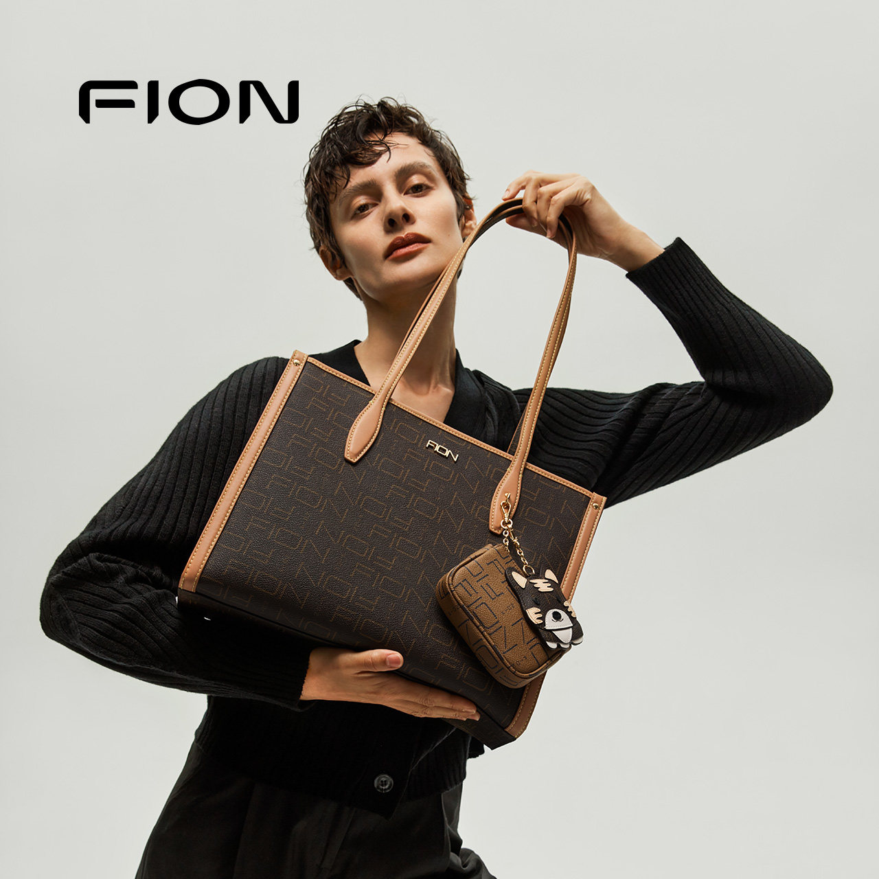 Fion/菲安妮老花托特包2025新款百搭上班通勤大容量单肩腋下包女