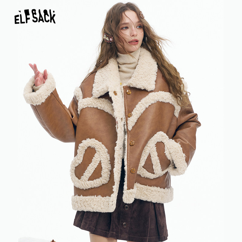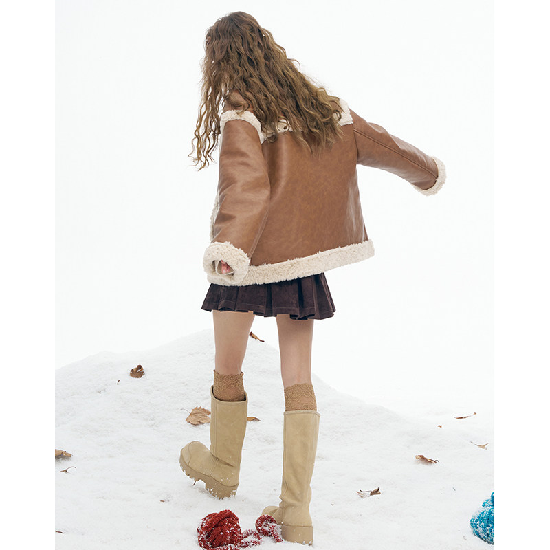 妖精的口袋复古皮毛拼接短款毛呢外套女2025年冬季新款甜酷风上衣