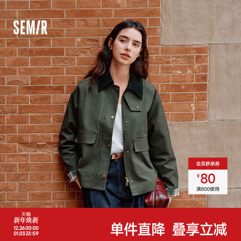 森马外套女巴恩风秋装早秋流行穿搭宽松上衣秋季灯芯绒翻领夹克