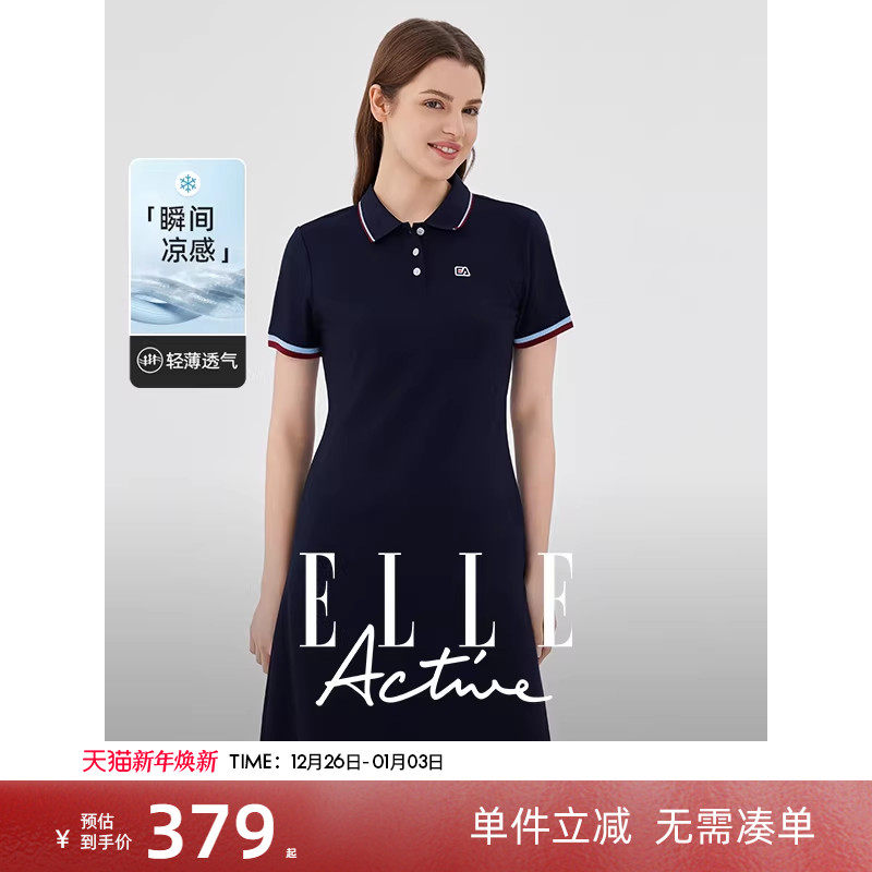【凉感面料】ELLE Active户外穿搭运动polo连衣裙收腰显瘦A字裙