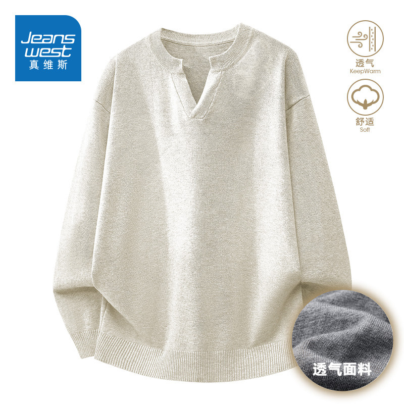 N5真维斯V领毛衣男2025新款秋冬季时尚男装上衣服宽松男款针织衫