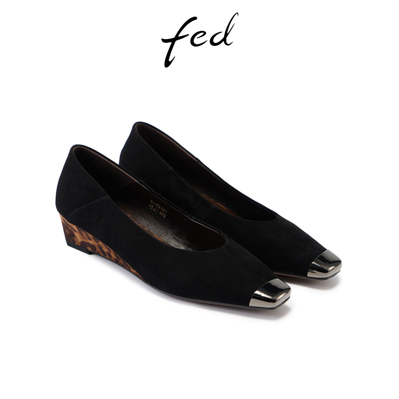fed缎影豹语单鞋春季新款女鞋小方头瓢鞋一脚蹬坡跟高跟鞋女ZC273