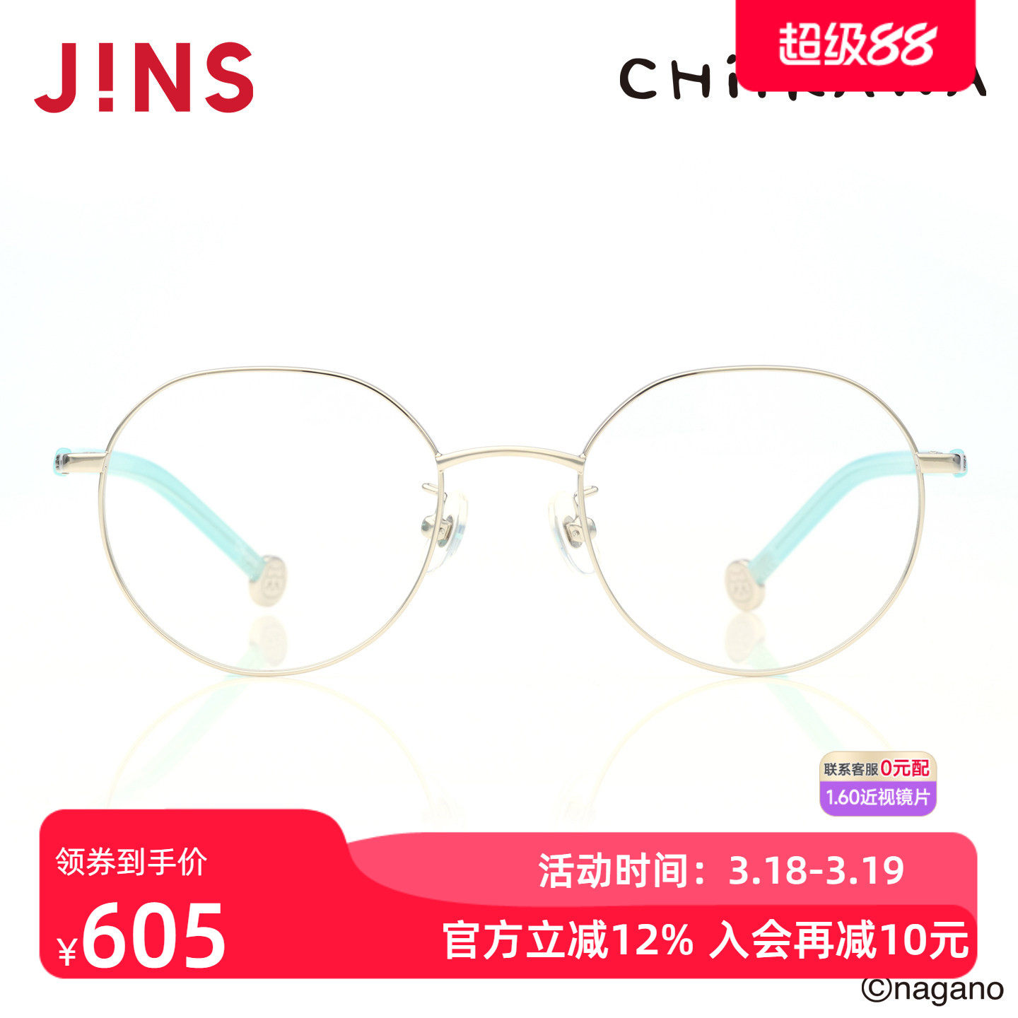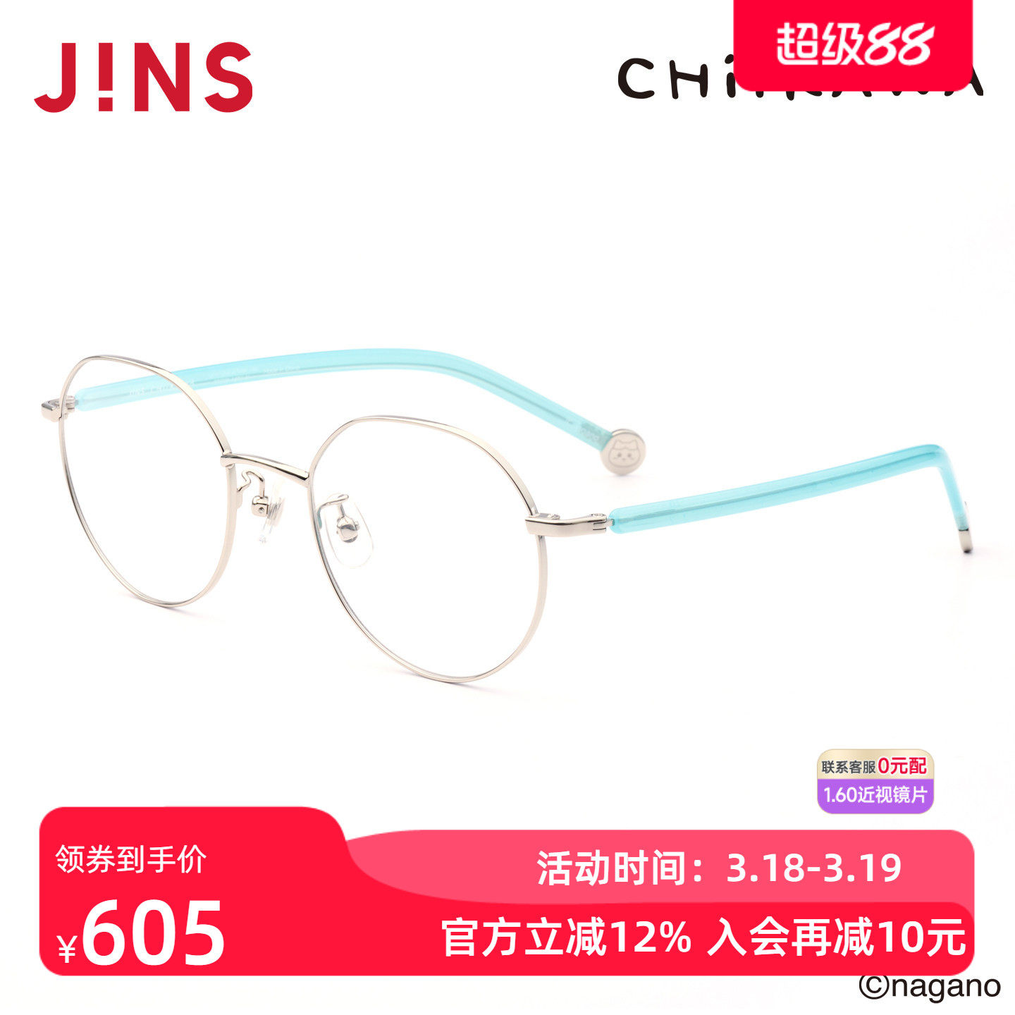 JINS睛姿吉伊卡哇哈奇喵合作款金属近视眼镜可加配镜片UMF25A279