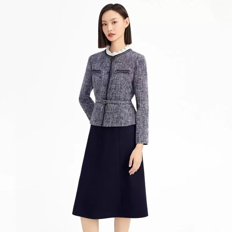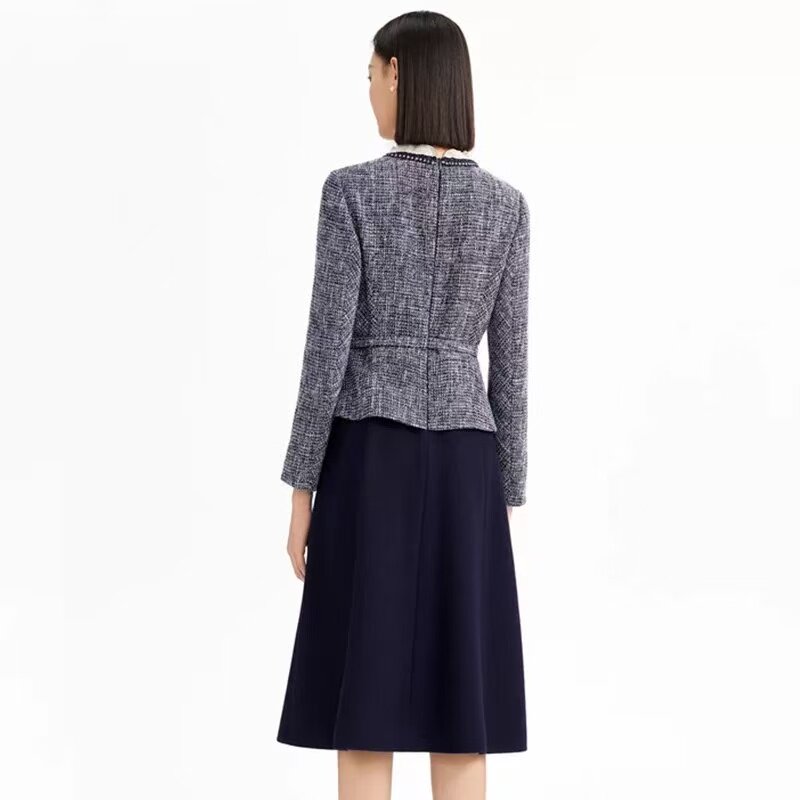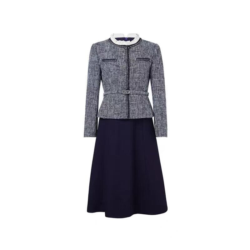 【小香风】2025年秋冬新款粗花呢连衣裙收腰显瘦假两件气质中长裙