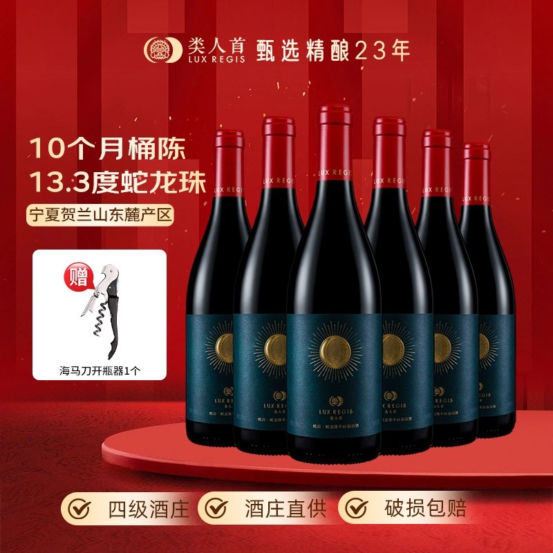 类人首 宁夏红酒 皓月蛇龙珠橡木桶干红葡萄酒750*6支装