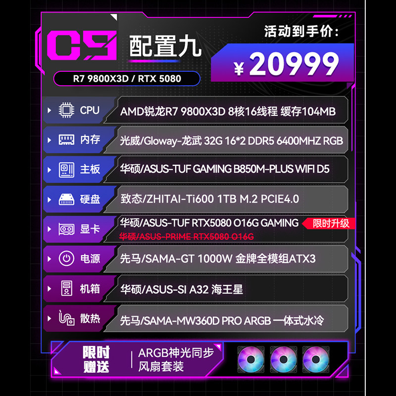 华硕海景房RTX5060/5060TI/5070/5070TI/5080/5090显卡游戏主机