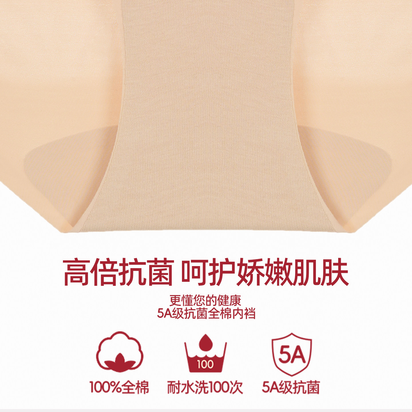妇炎洁牌内裤女2025新纯棉抗菌全棉裆中高腰加长底裆无痕舒适三角