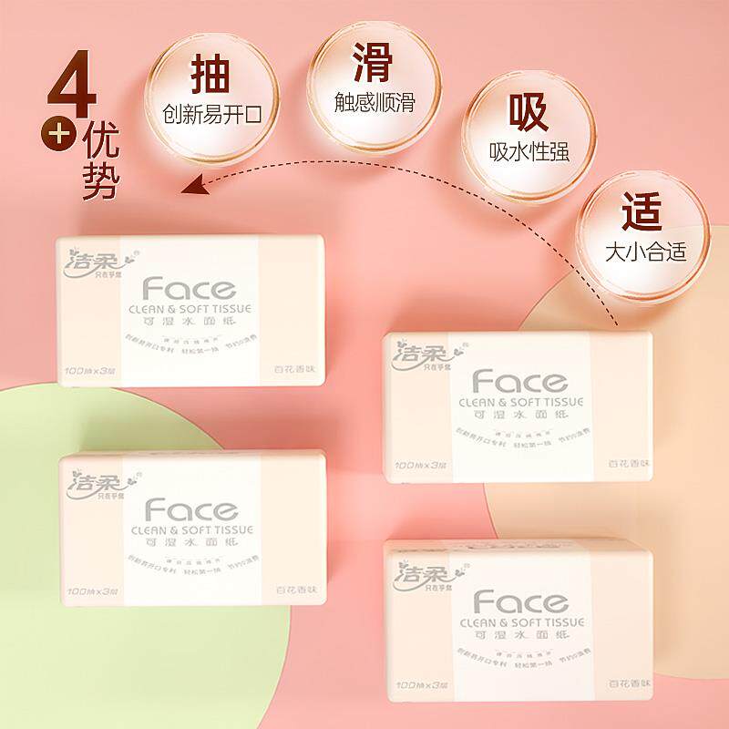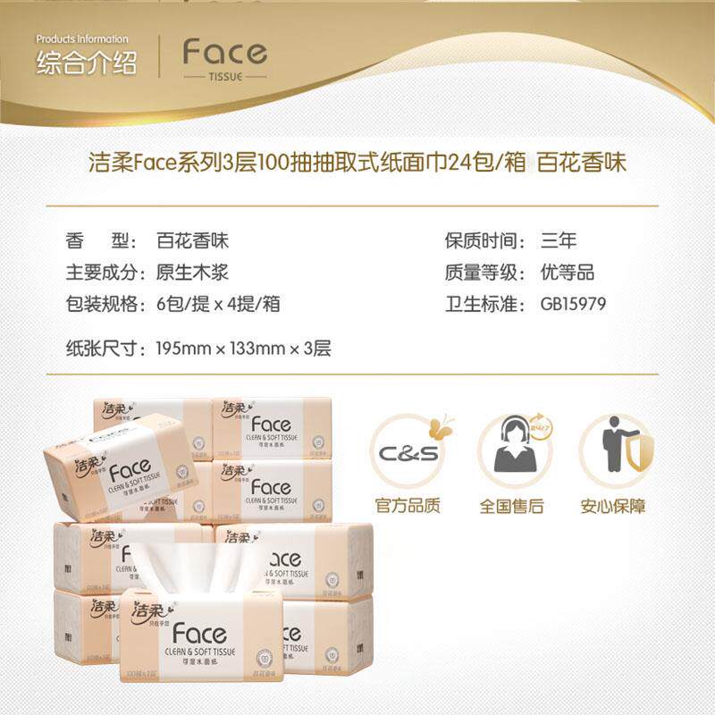 洁柔纸巾百花香抽纸100抽24包面巾纸家用卫生纸整箱实惠装餐巾纸