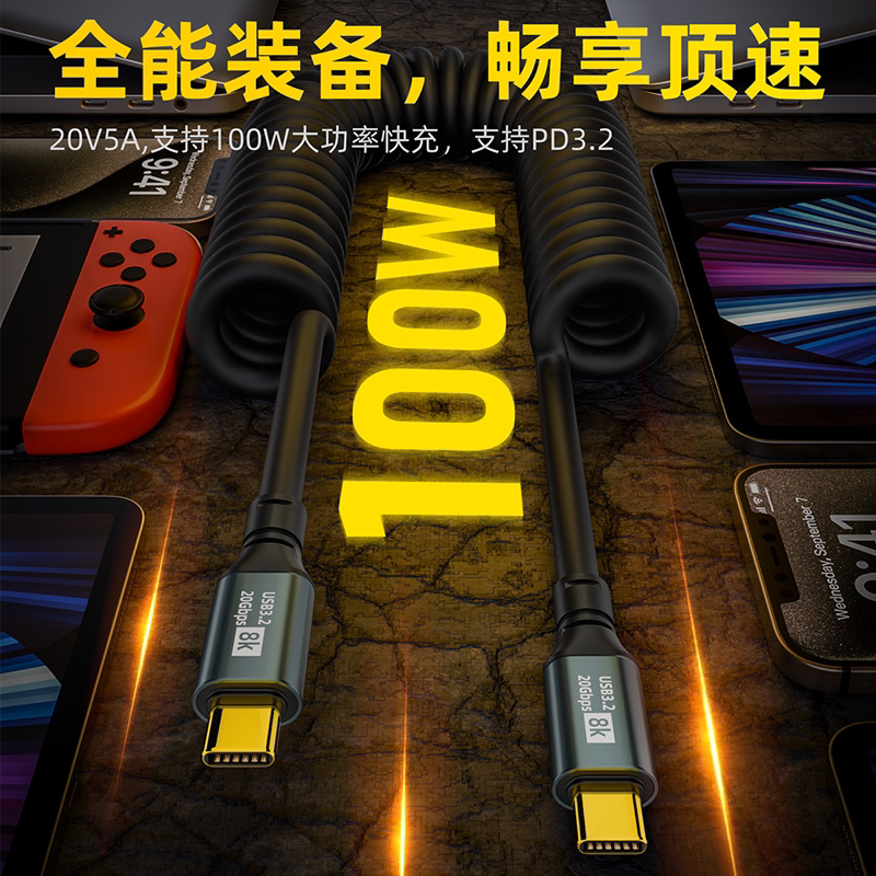 usb3.2全功能数据线8K投屏适用华为苹果iphone15刷机显示器移动硬盘16Pro高速传输双头typec公对母弹簧充电线