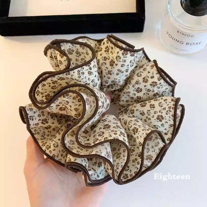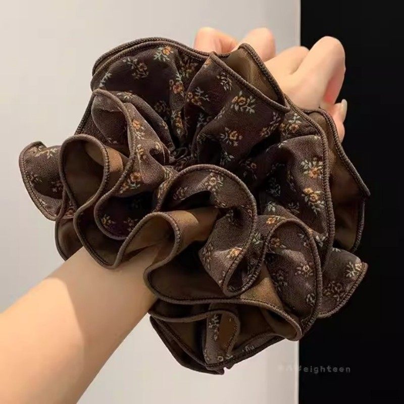 大肠发圈新中式咖色碎花四层女慵懒风扎头发大号复古发饰头绳