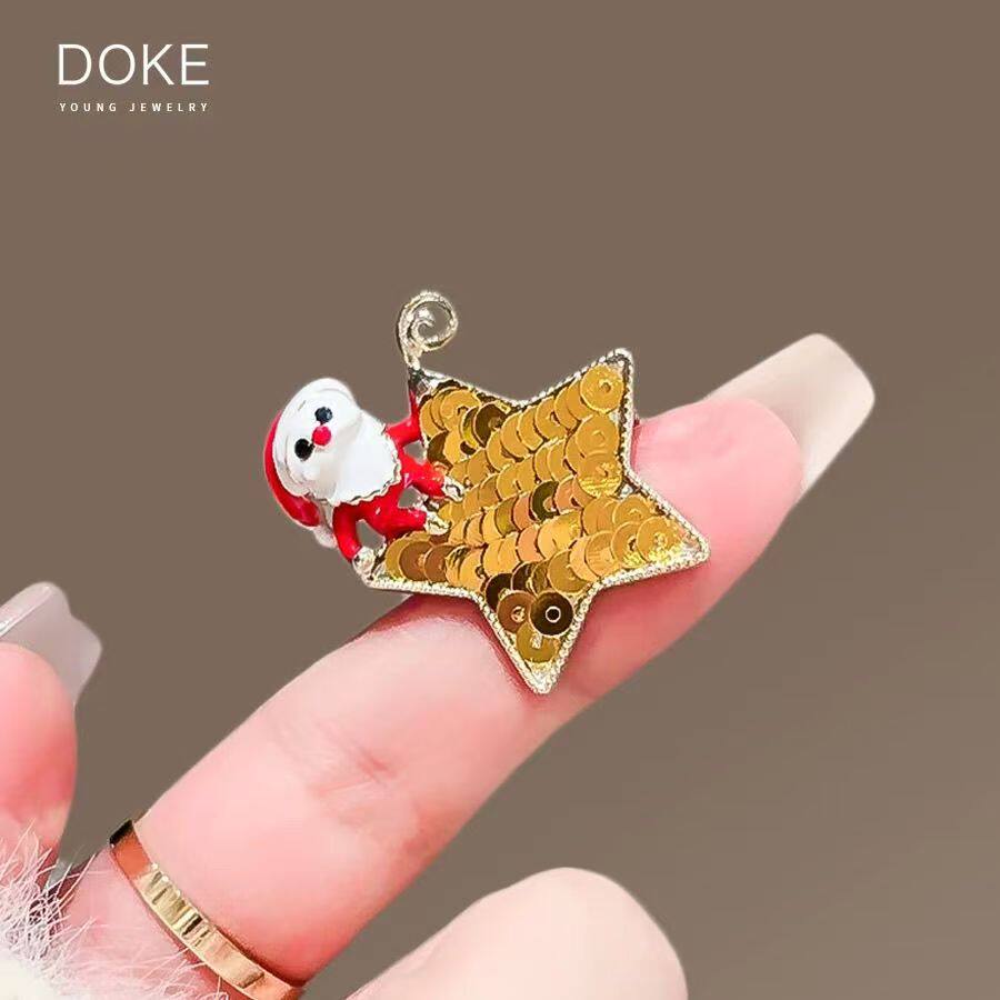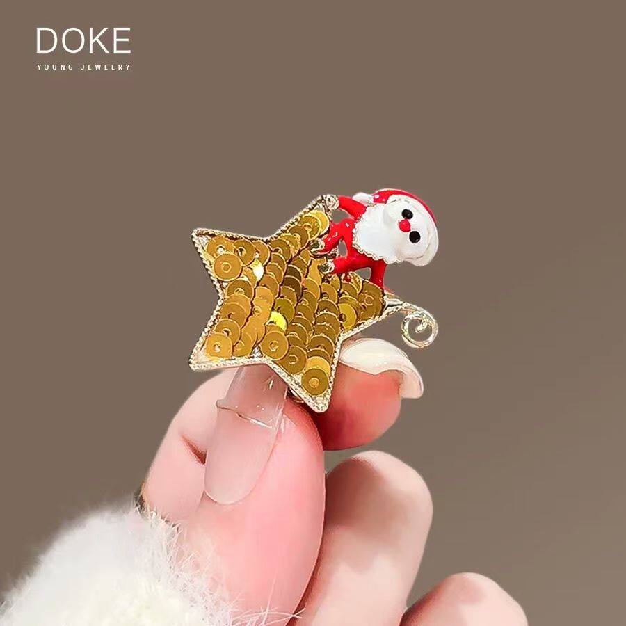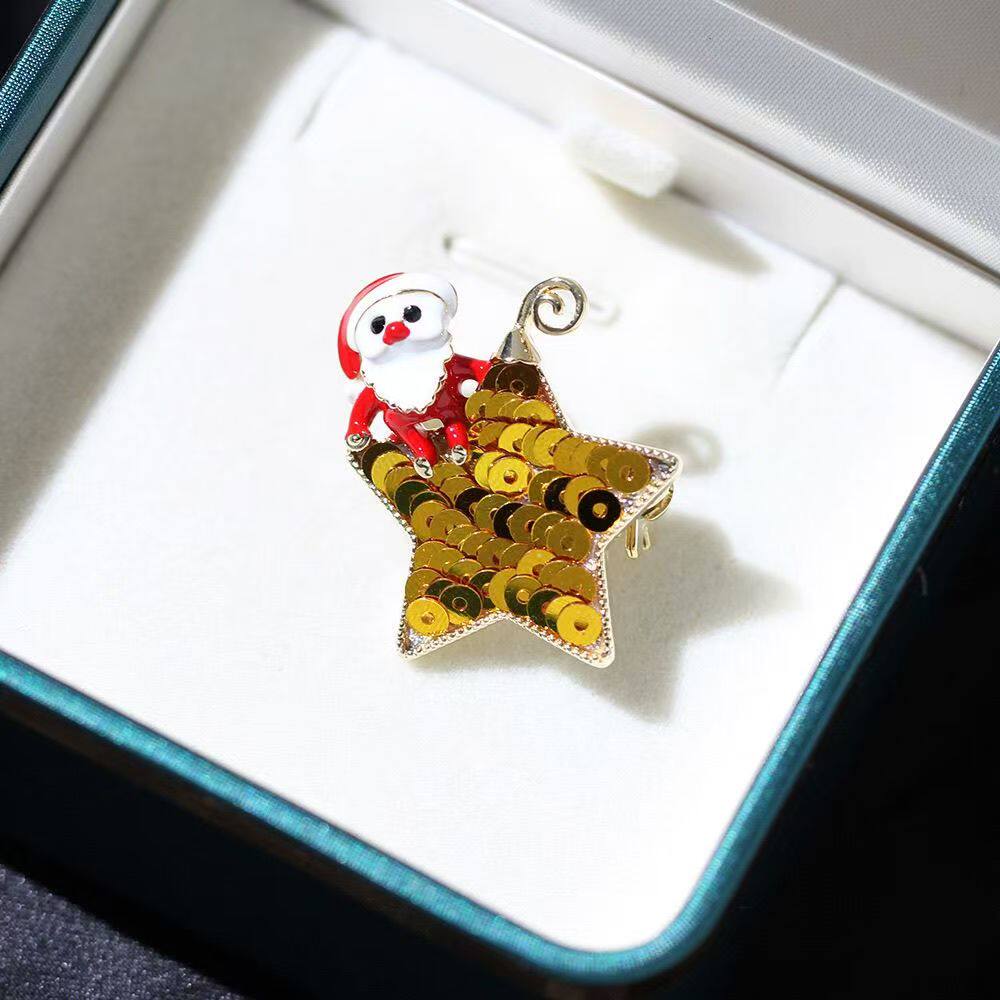 金色亮片星星圣诞老人胸针男女可爱个性别针时尚胸花配饰徽章礼物