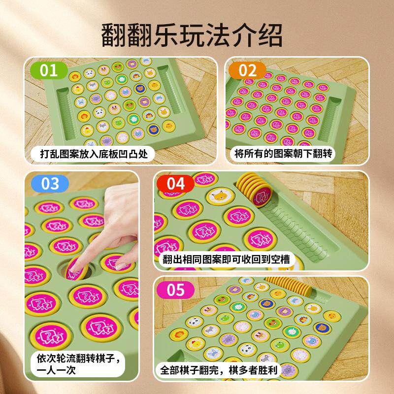 儿童动物翻翻棋对对碰双人对战益智玩具亲子互动水果连连看记忆棋