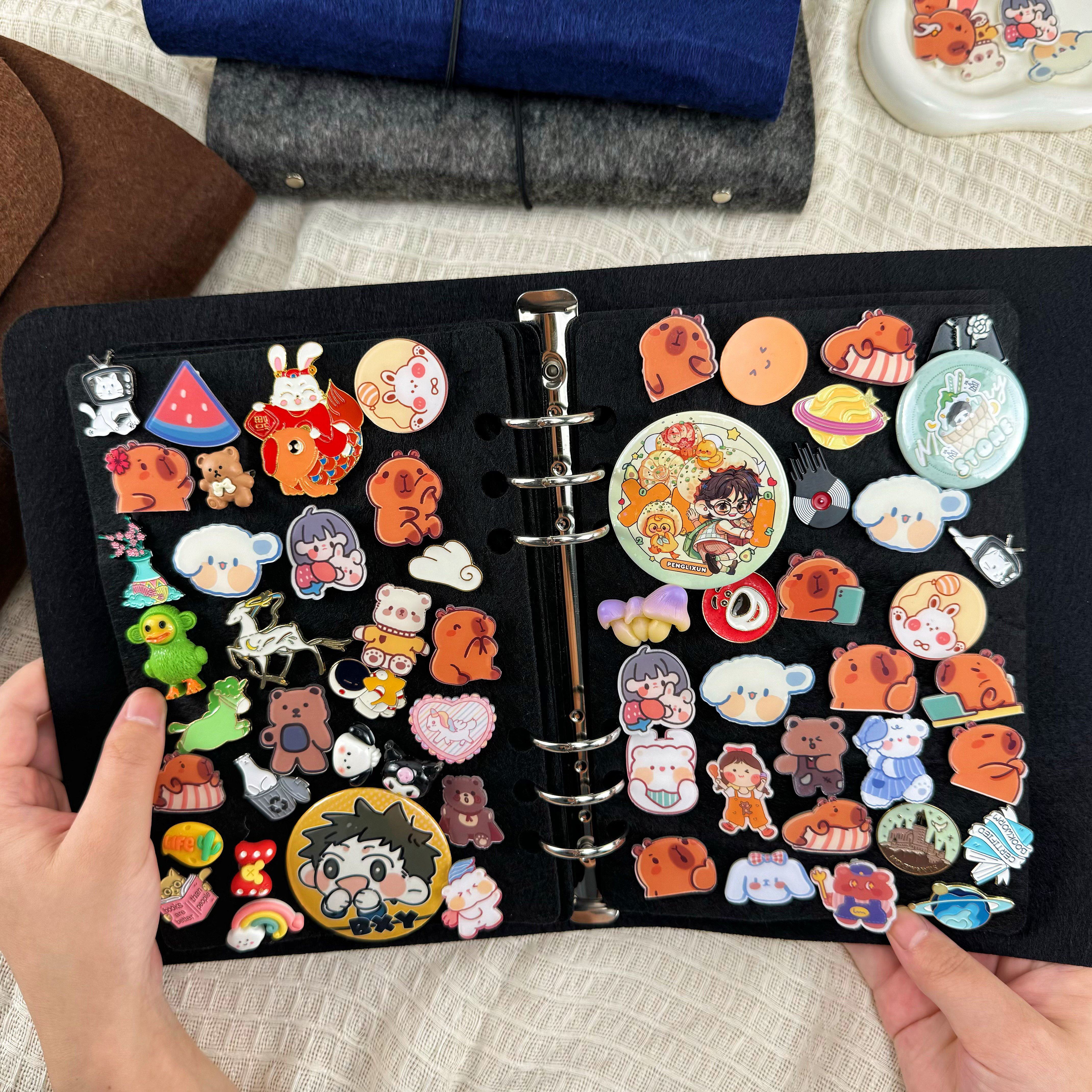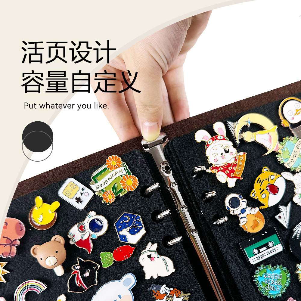 金属徽章收纳册勋章收藏册展示胸针吧唧收藏整理本简约大容量翻页毛毡板谷子收纳防尘册