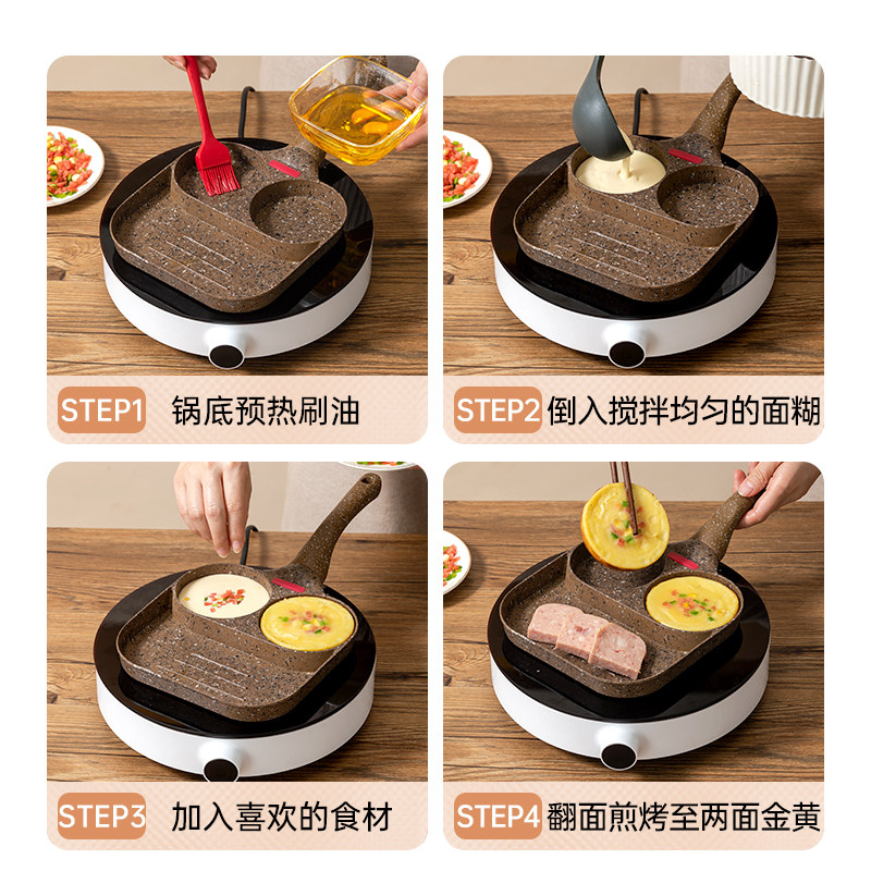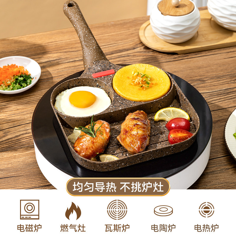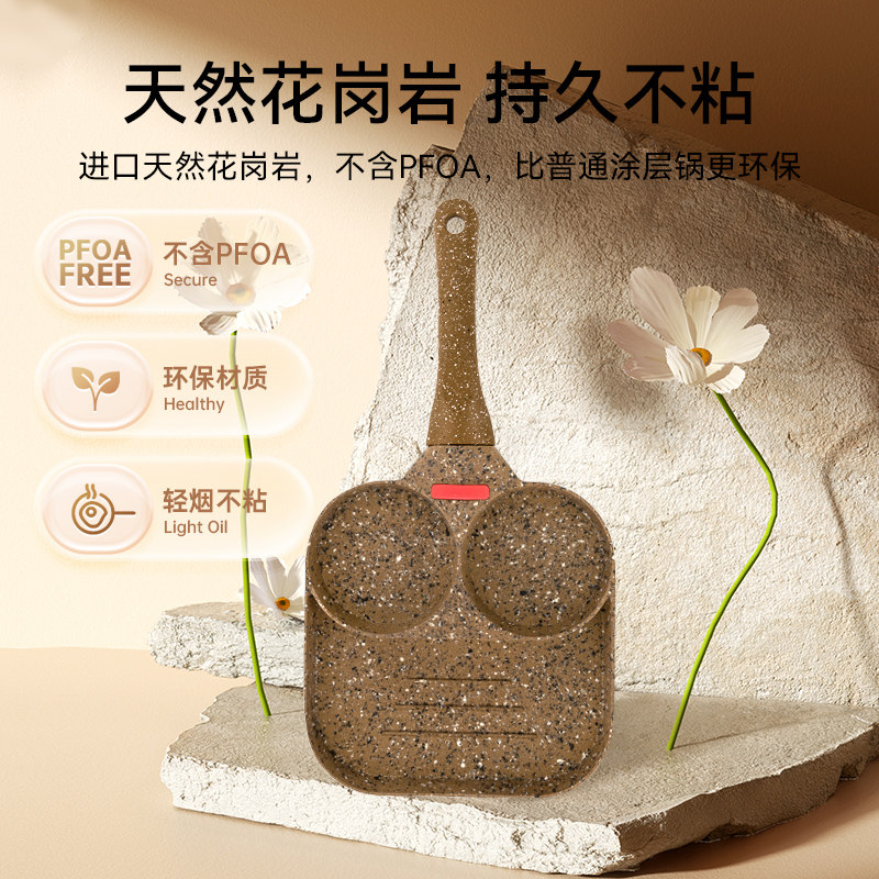 会员专享花岗岩早餐锅三孔四孔煎蛋锅鸡蛋汉堡不粘锅平底煎锅不沾