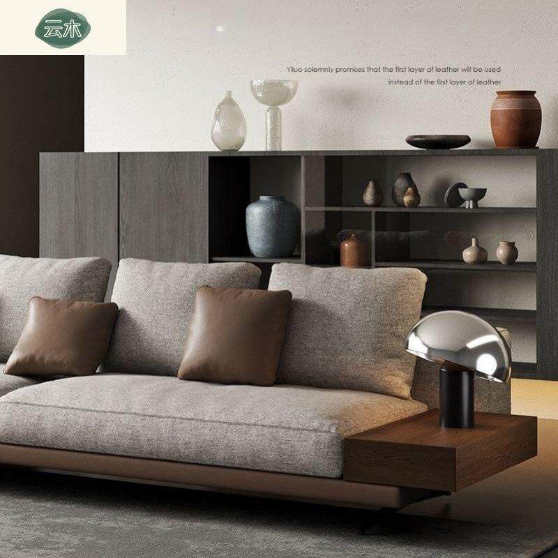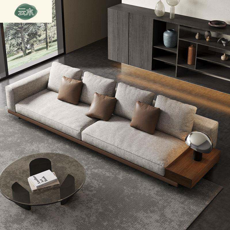 现代简约沙发中古风棉麻布艺时尚沙发大小户型客厅直排绒布沙发