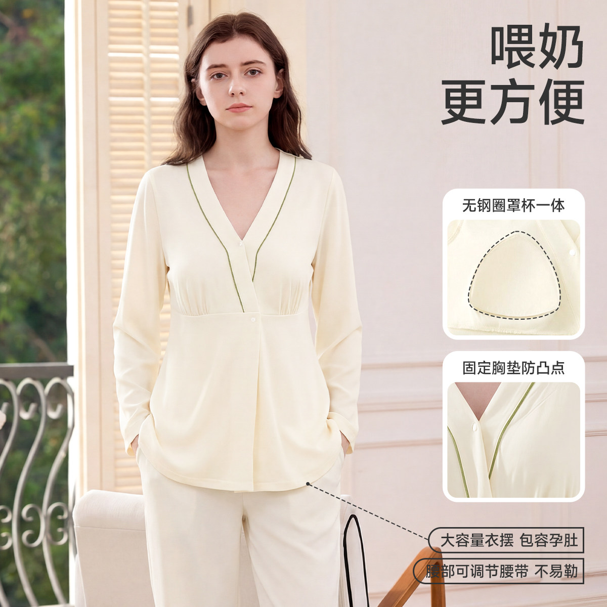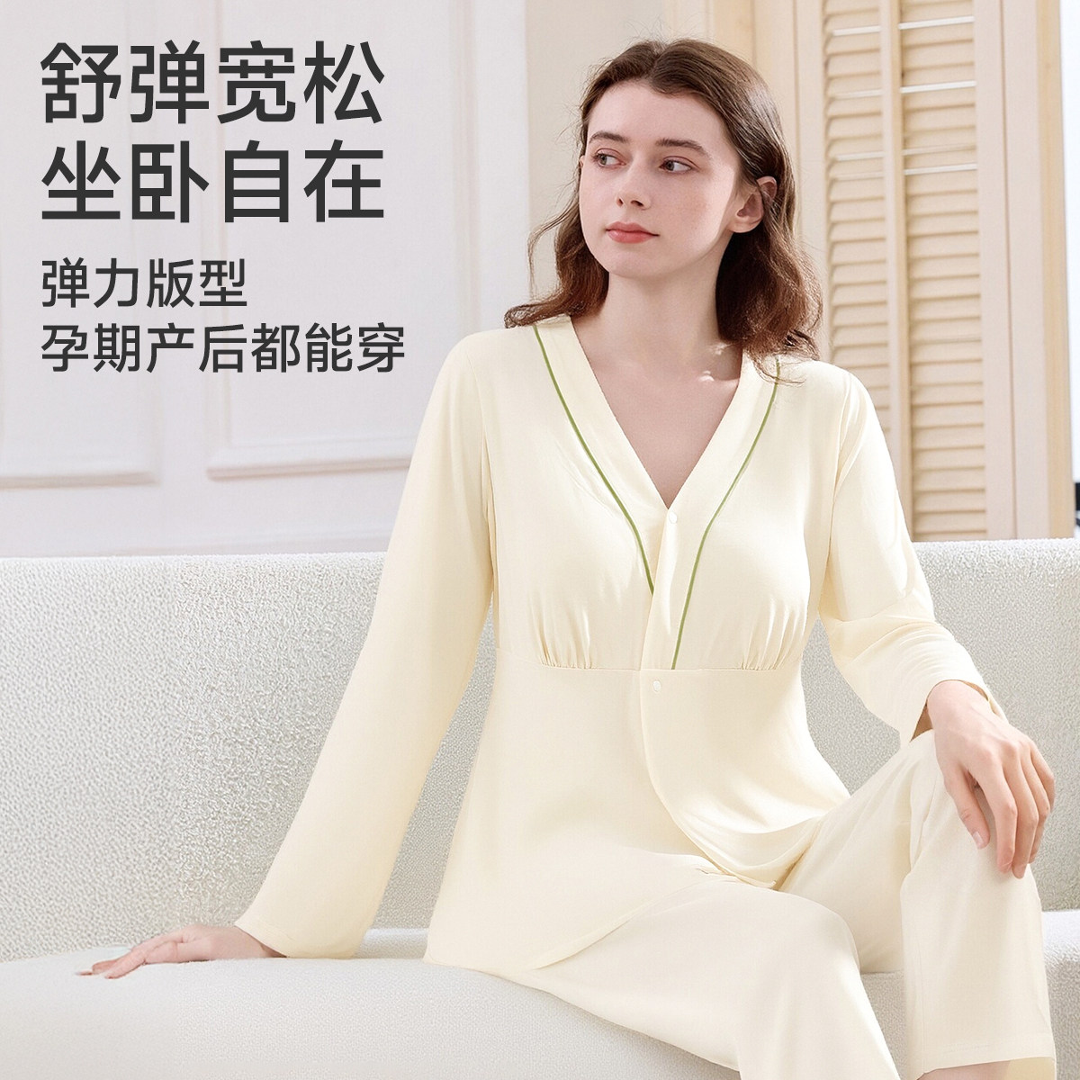 婧麒云慕丝月子服产后秋冬季纯哺乳家居服棉怀孕产妇孕妇睡衣套装