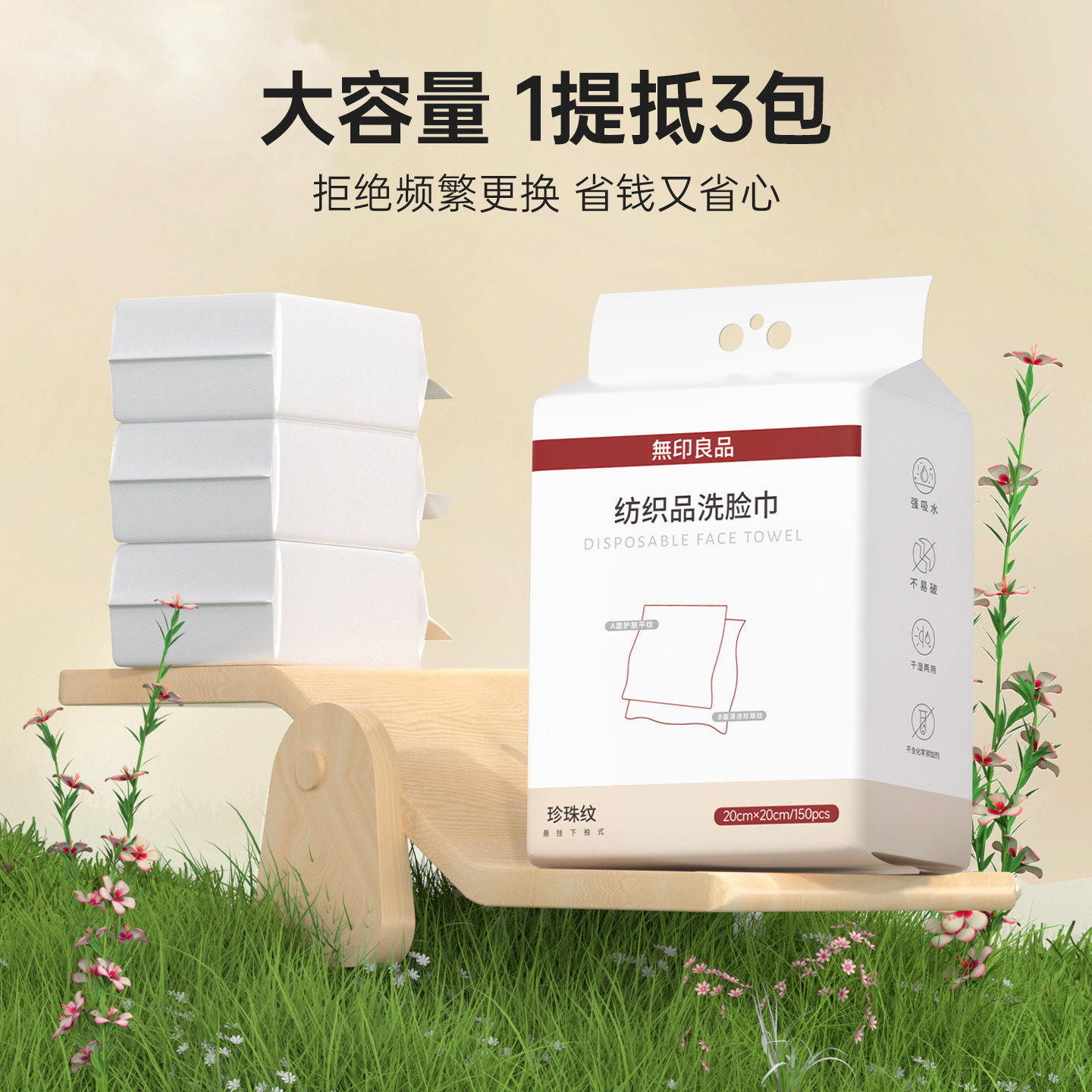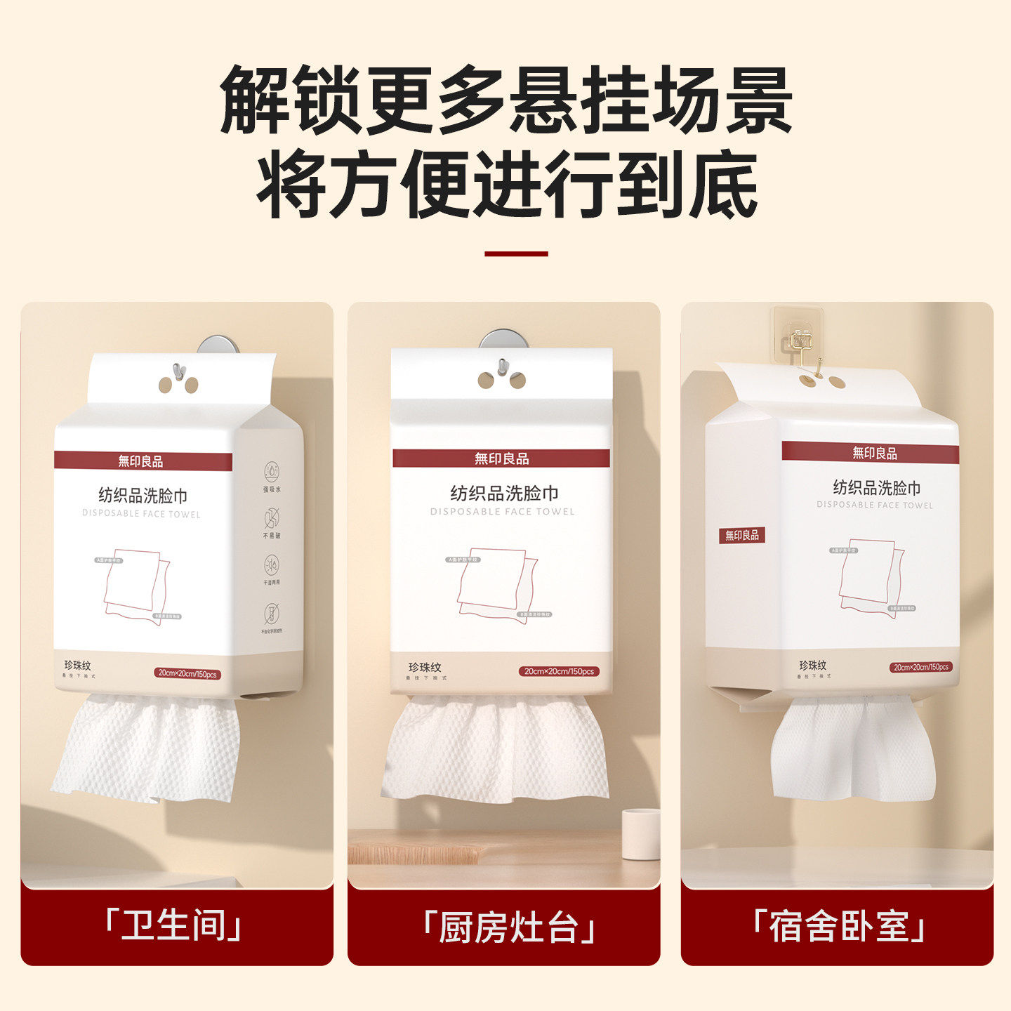 无印良品一次性洗脸巾擦脸巾悬挂干湿两用加厚用抽取式挂式棉柔