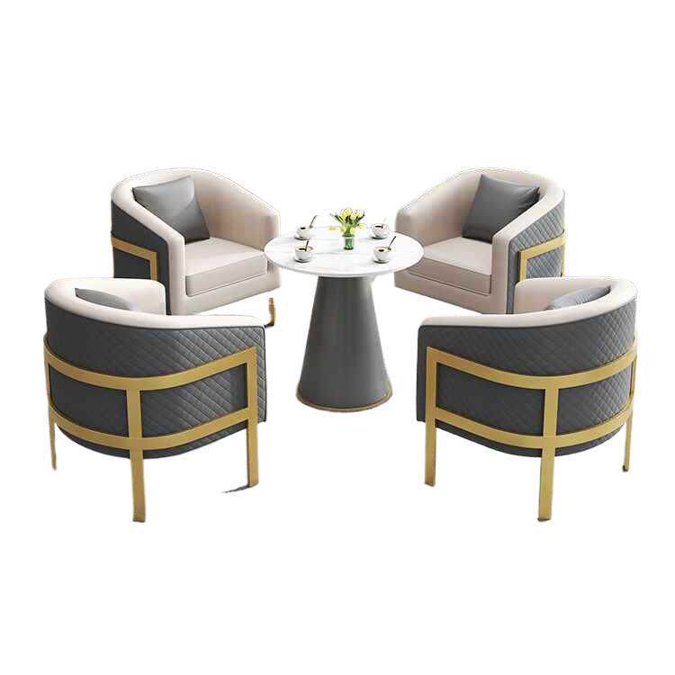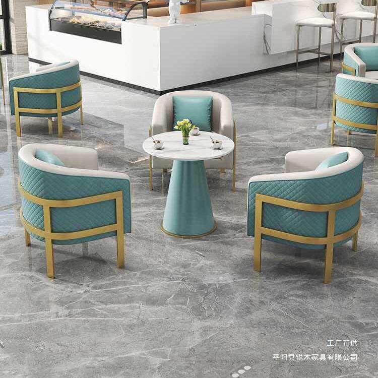 皮艺洽谈桌椅组合咖啡厅接待会客休闲沙发茶几商场休息区酒店商务