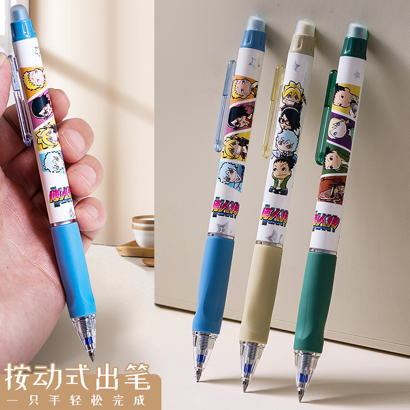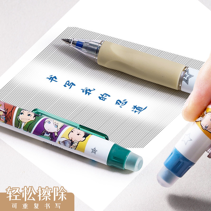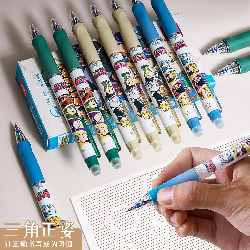 得力火影忍者可擦中性笔小学生魔力热可易热敏可擦黑色晶蓝色水笔笔芯0.5全针管3-5年级学生能擦掉干净摩磨笔
