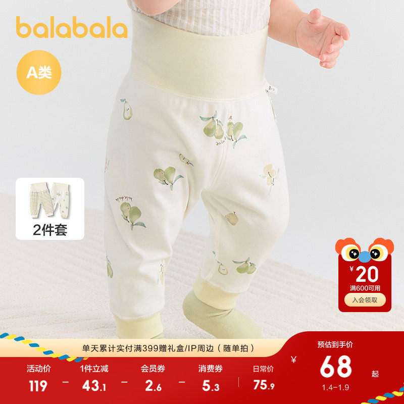 巴拉巴拉童装婴儿裤子下装两件装秋2025新款宝宝衣服高腰护肚舒适