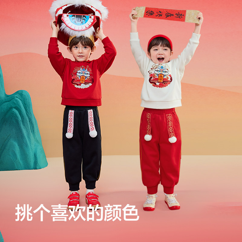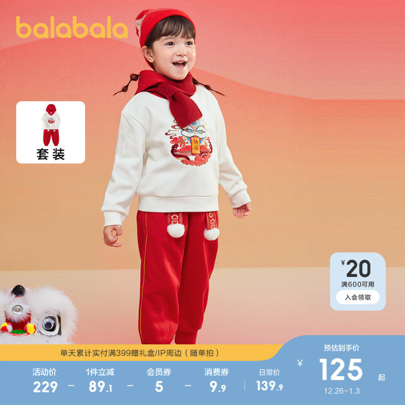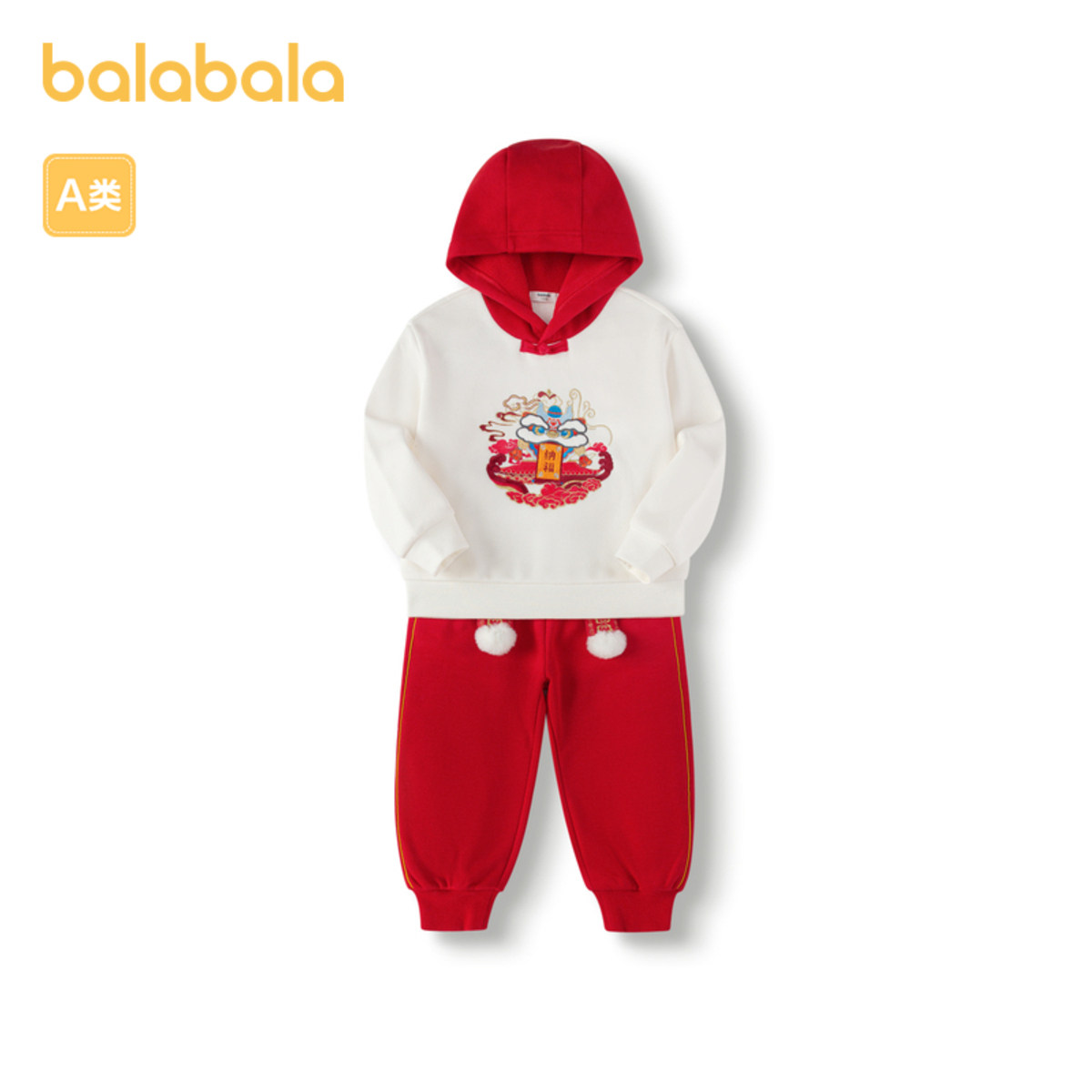 巴拉巴拉童装儿童套装男童女童加绒加厚新中式两件套红色拜年服潮