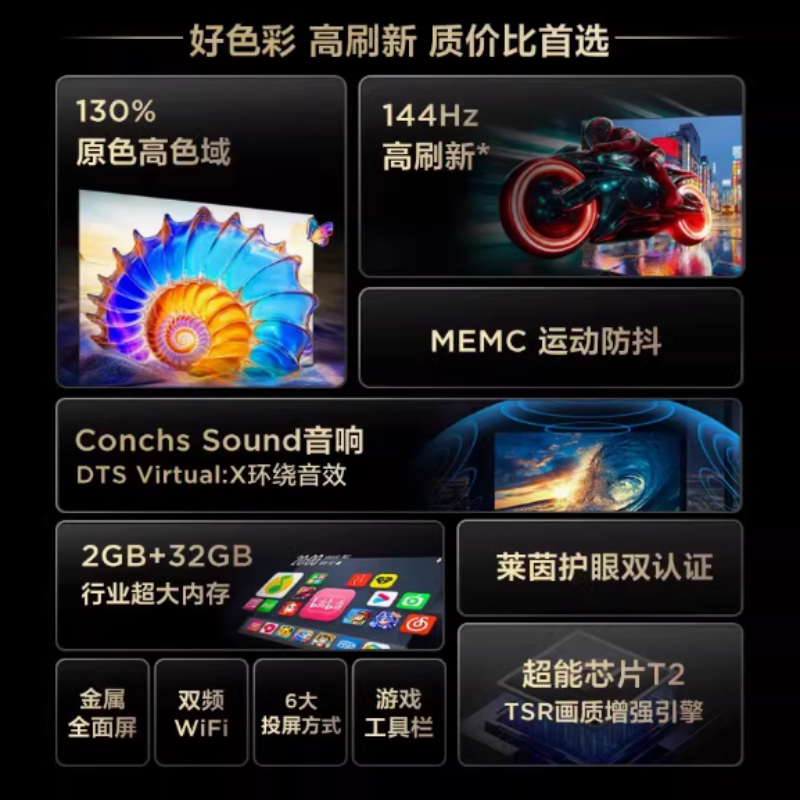TCL 75V8L 75英寸 高色域平板智能电视机